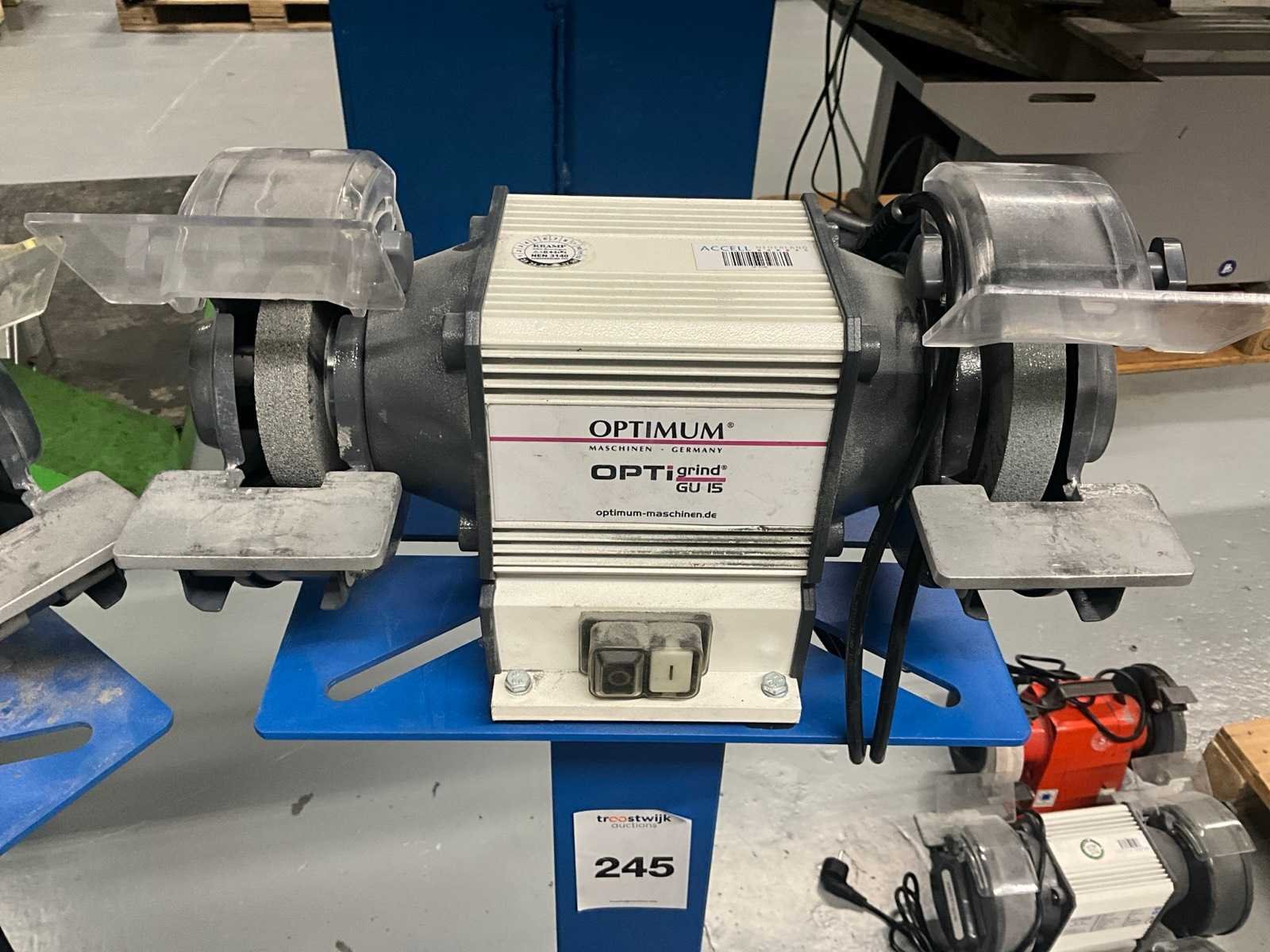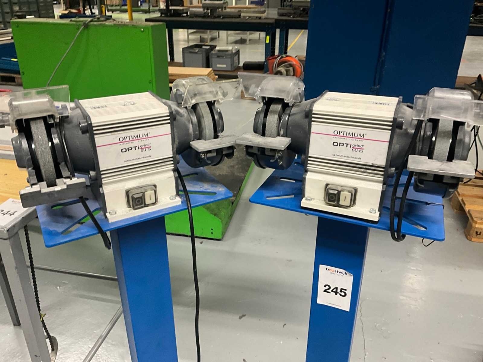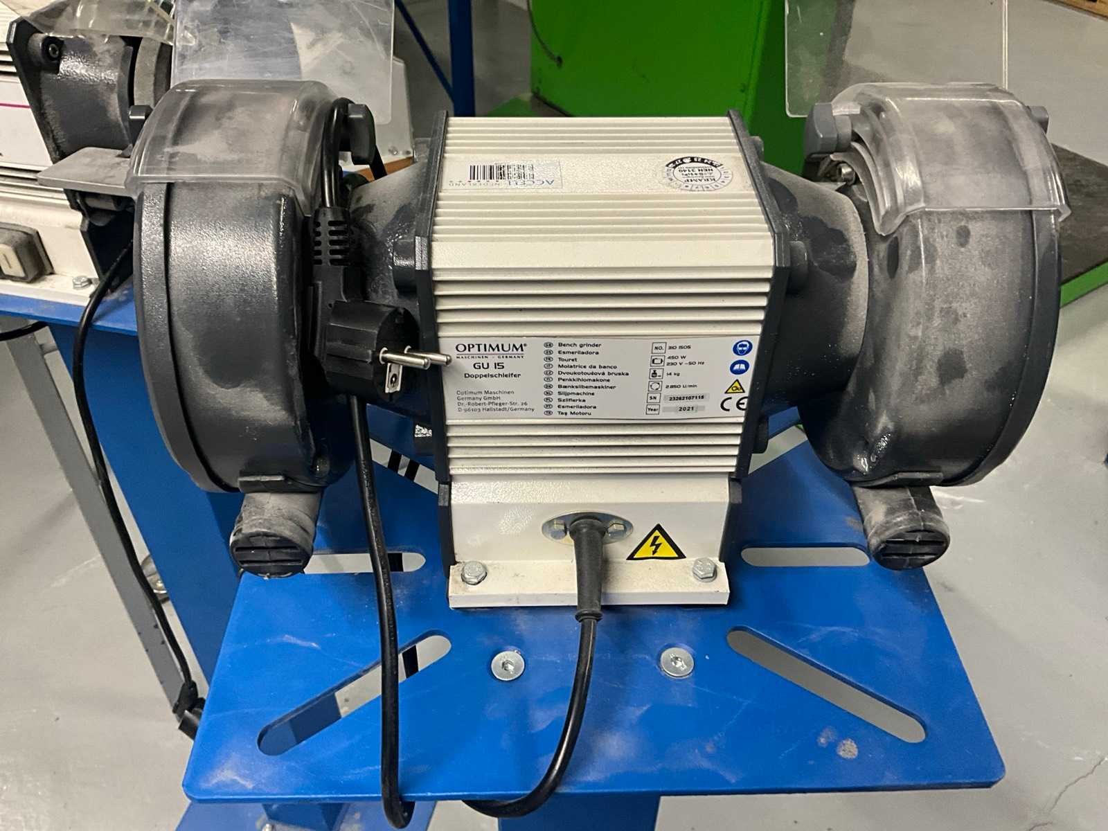 Optimum optigrind gu 15 dubbelsteens slijpmachine op sokkel (2x)