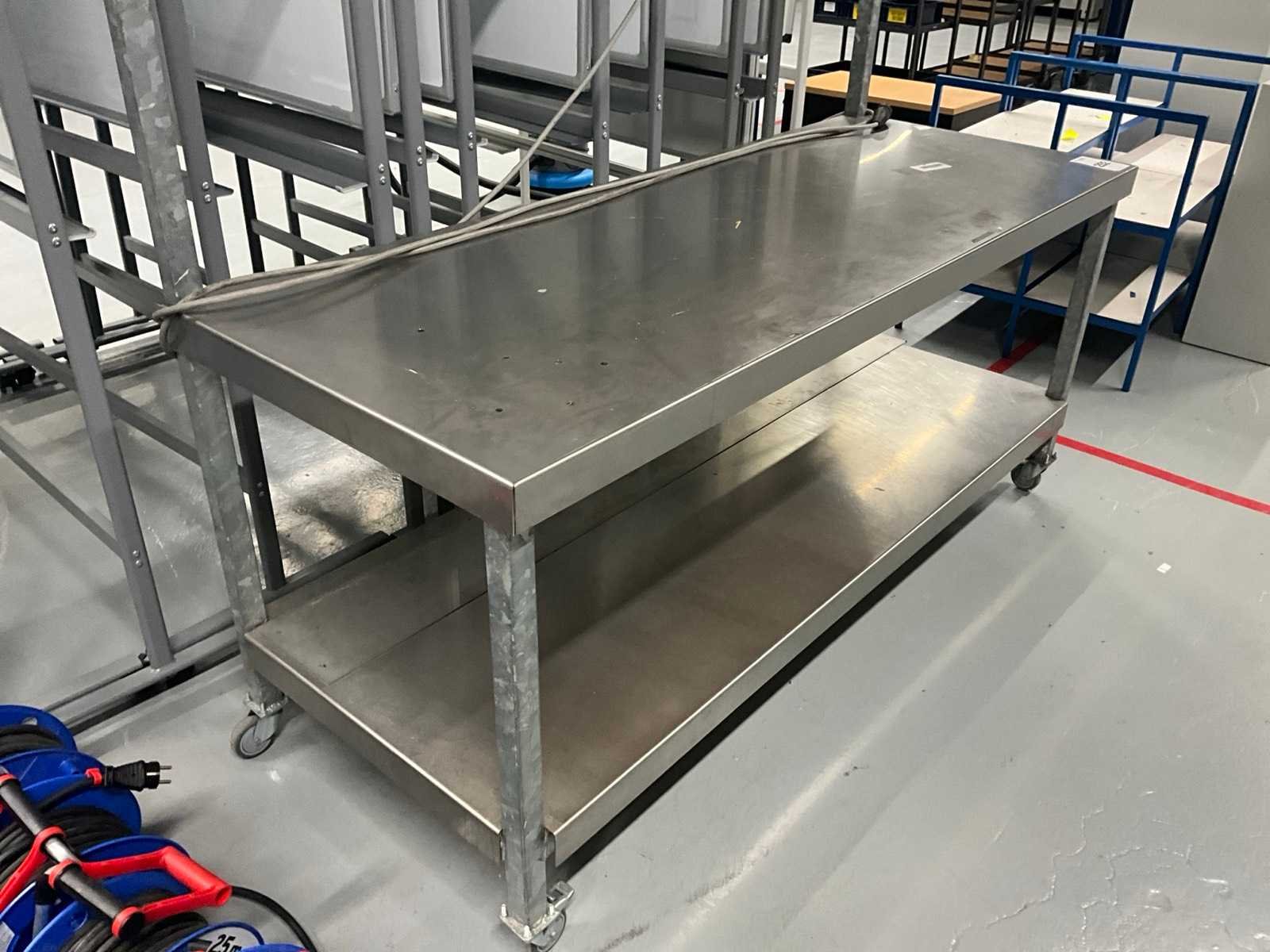 Voorzien van verlichting, RVS werkblad, 4x zwenkwiel, werkblad hoogte circa 820 mm Breedte: 1810mm Lengte: 700mm Hoogte: 1900mm