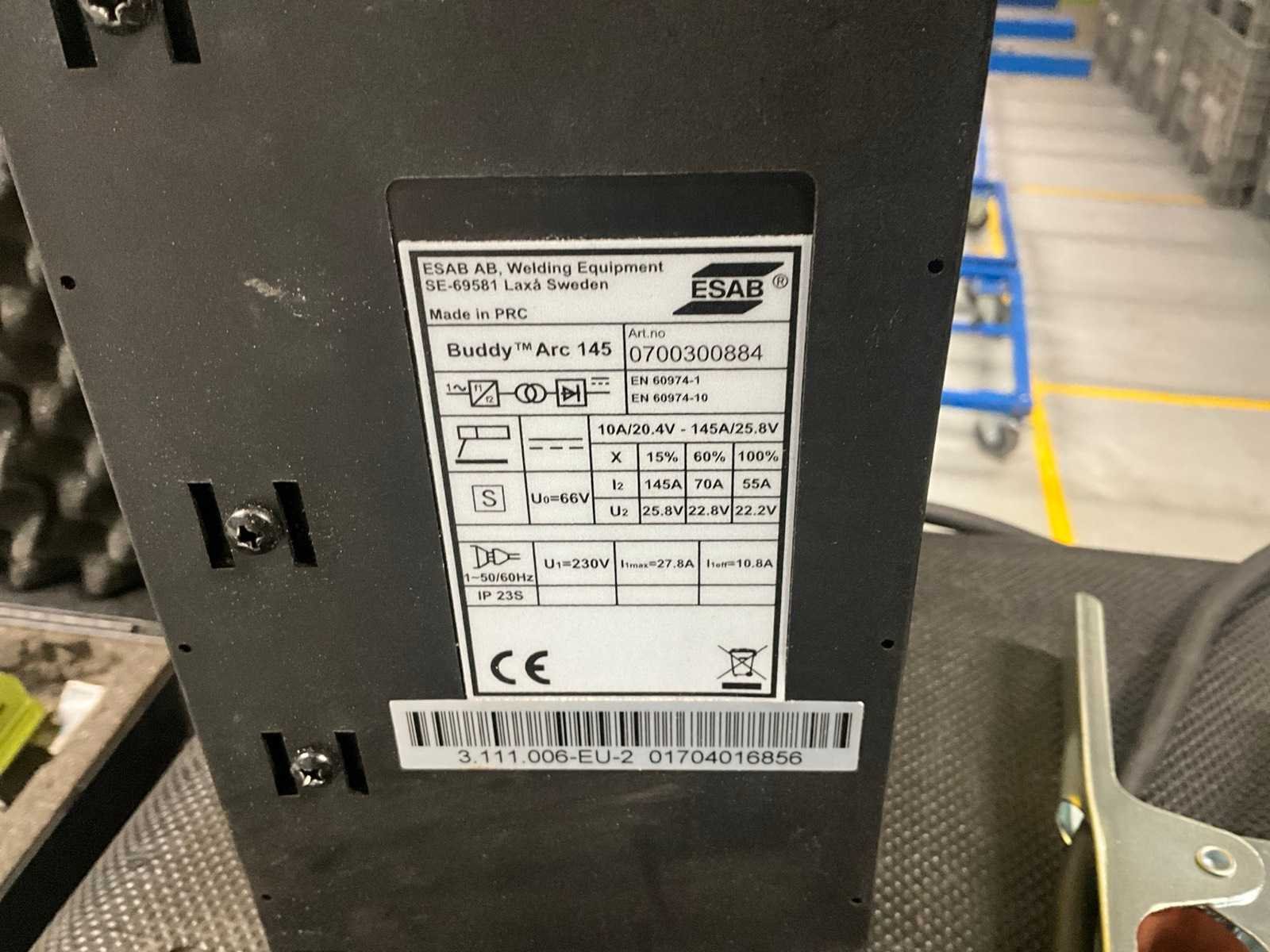 Inclusief transportkoffer, lashelm Merk: Esab Type: Buddy Arc 145 Inschakelduur: 15% Max. lasvermogen: 145A