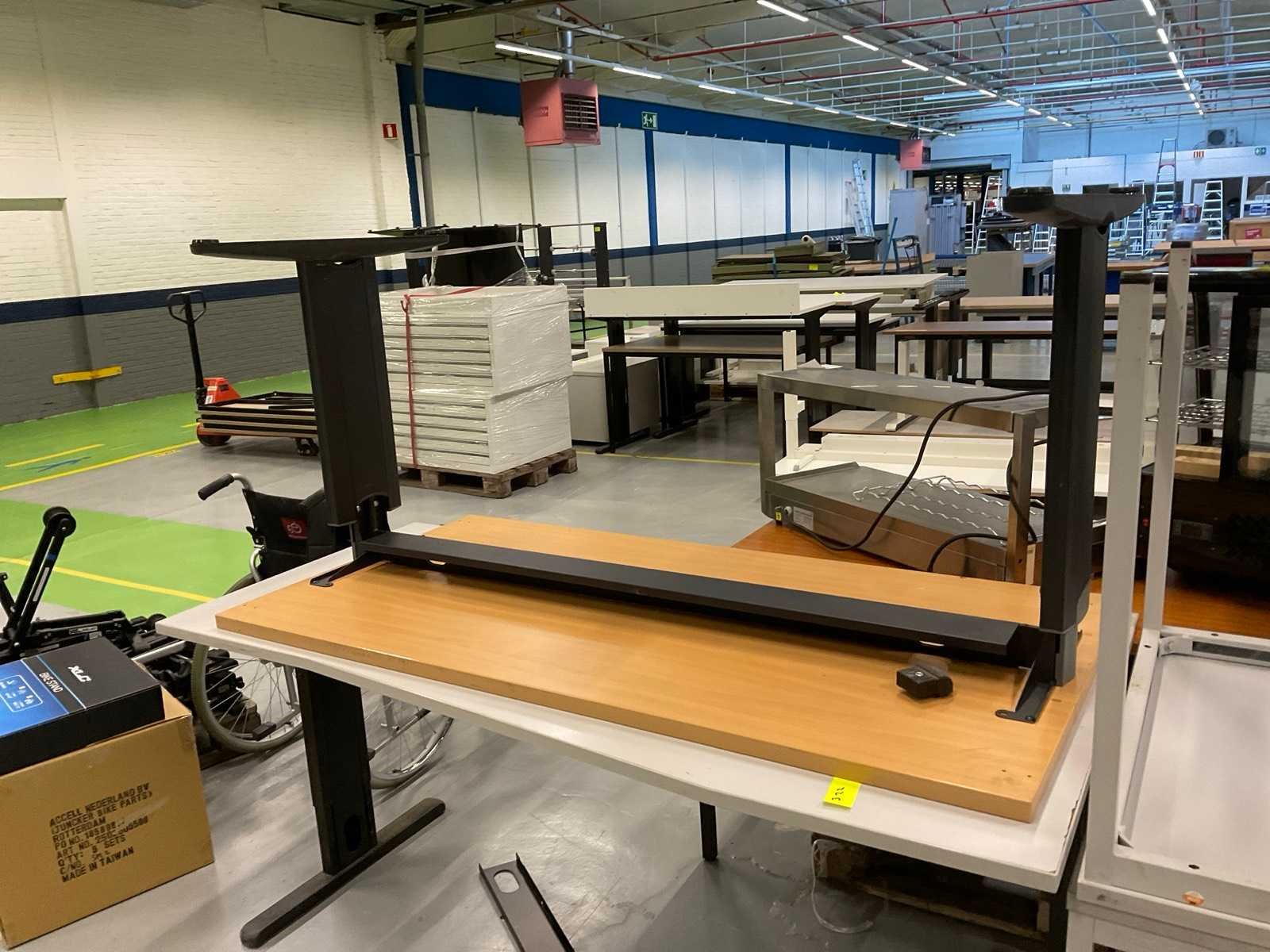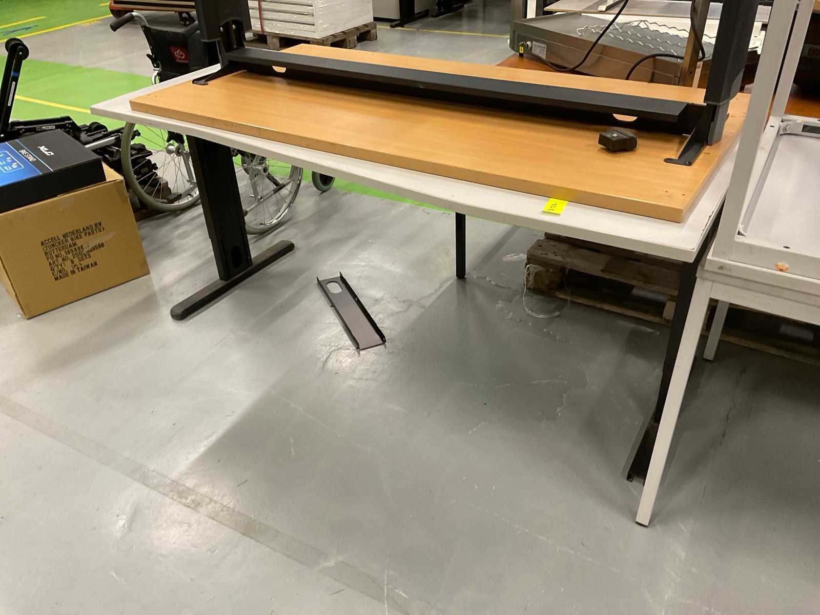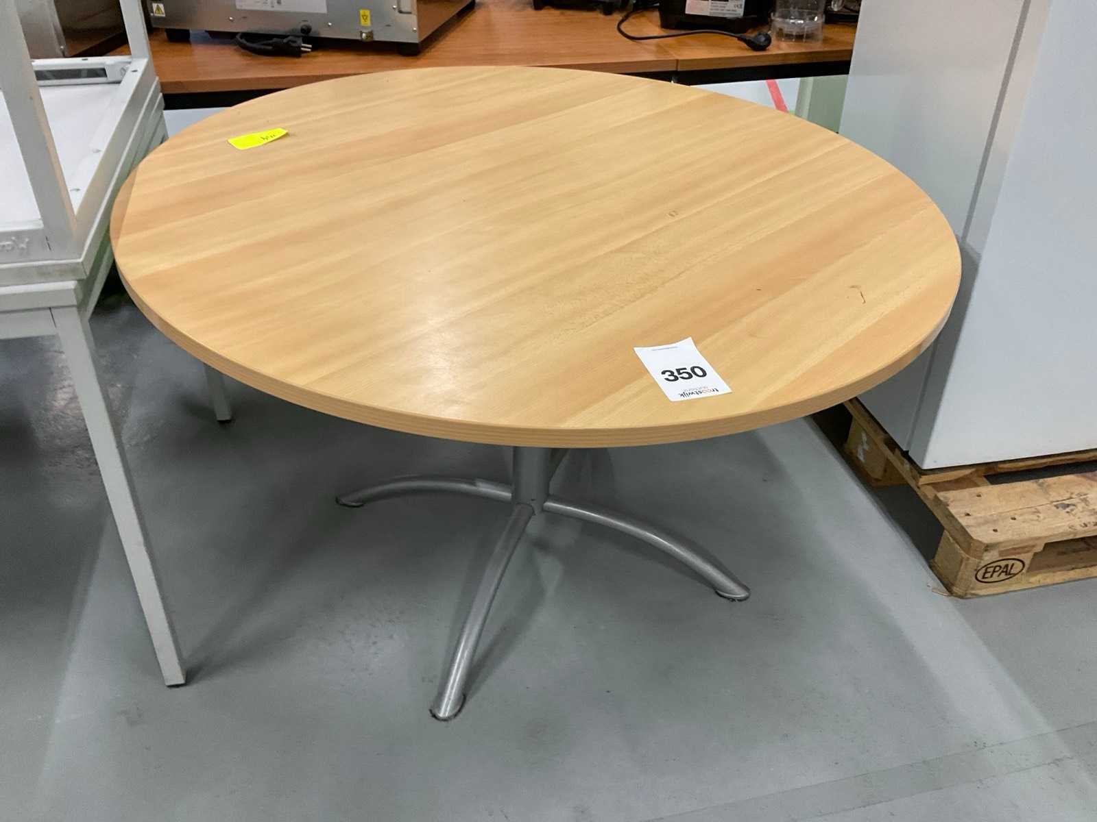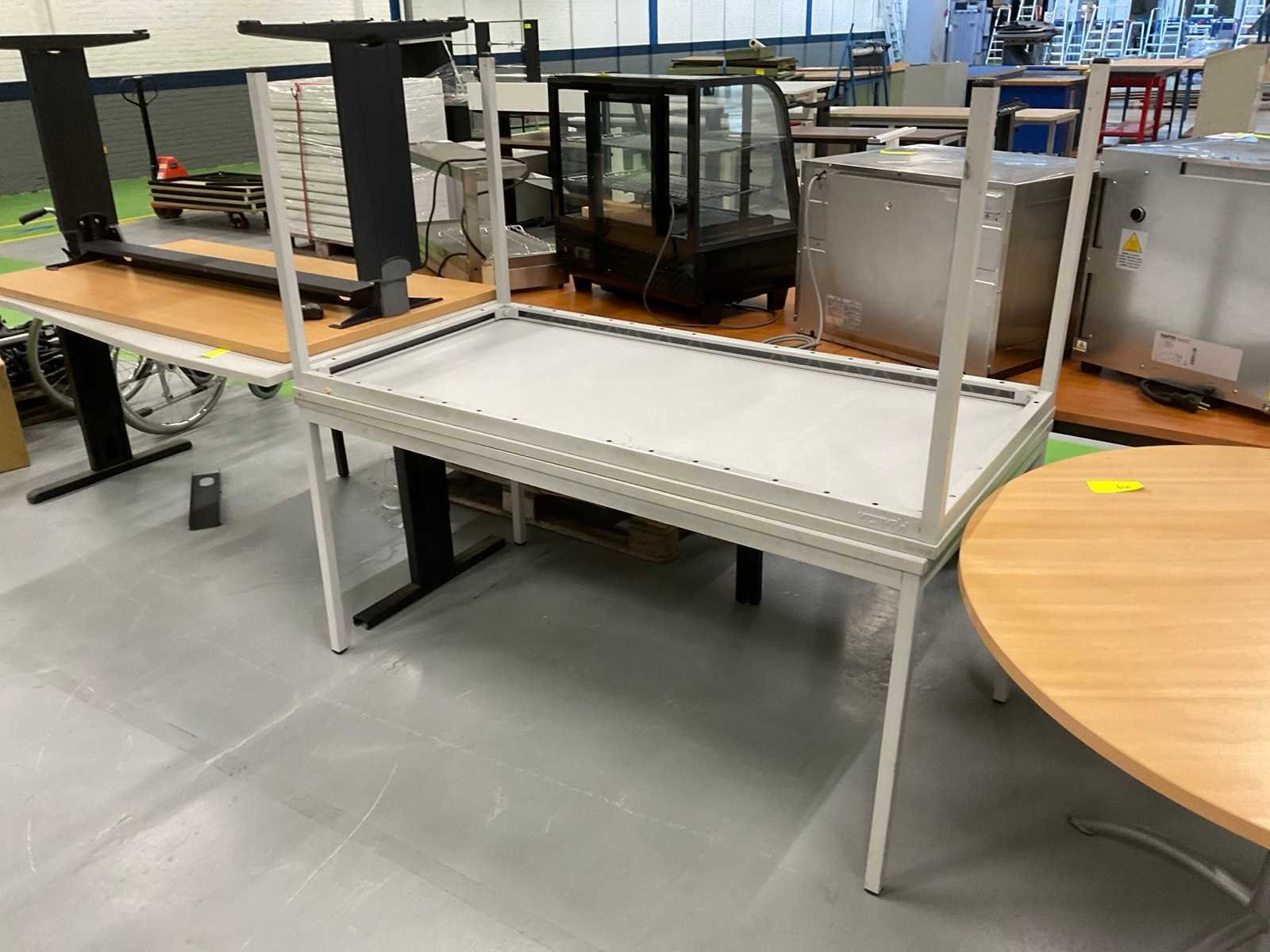 Bestaande uit: (1x) ronde vergadertafel Ø 120cm, (2x) Manutan tafels 160x80cm, (1x) bureautafel 160x80cm, (1x) bureautafel 180cm.
