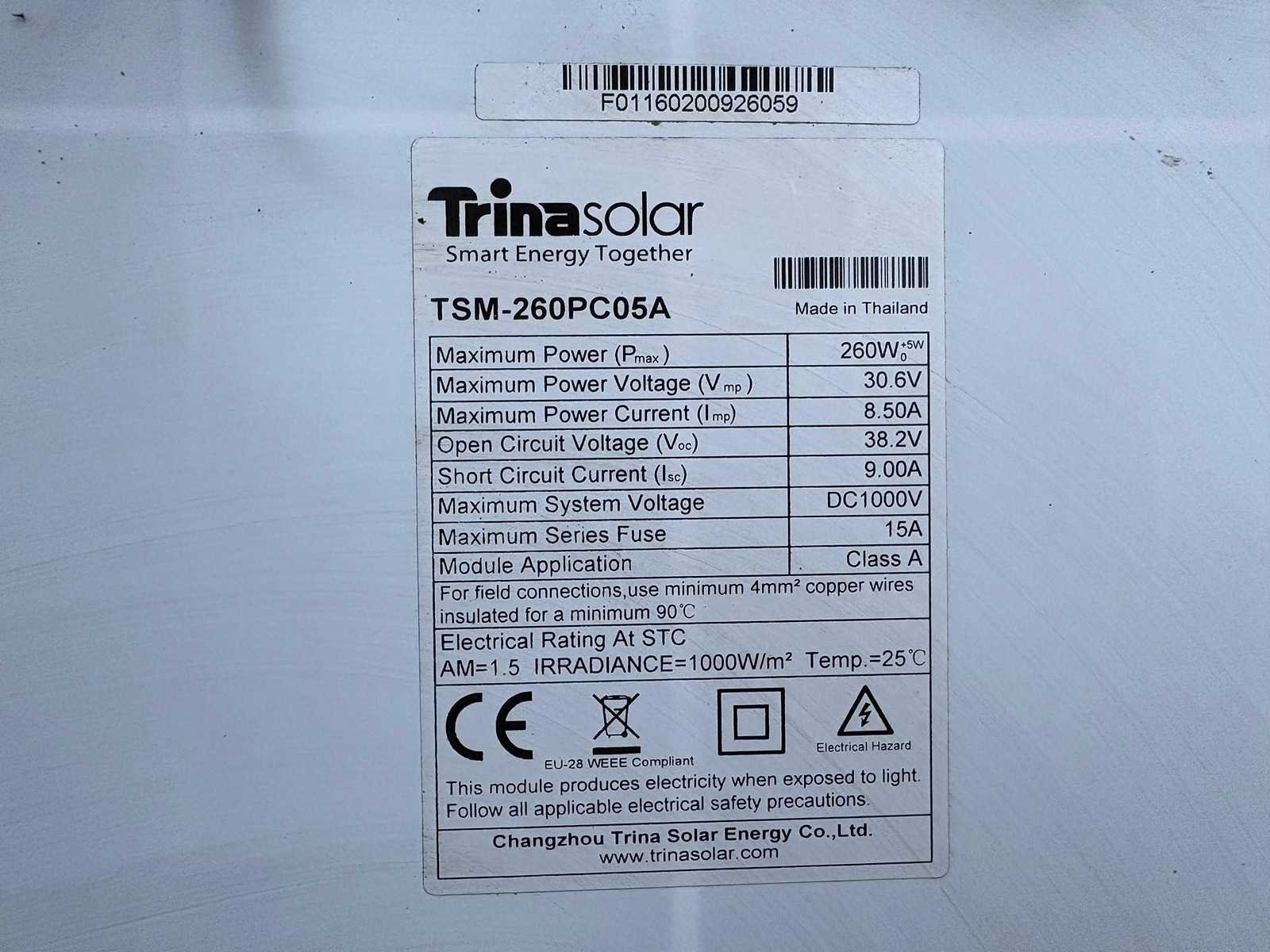 Trina solar - gebruikt (260 wp) zonnepaneel (102x)