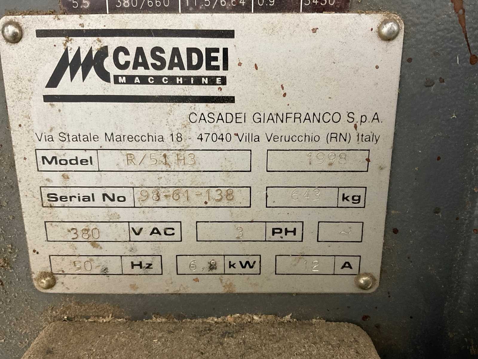 Merk: Casadei Type: R51h3 Bouwjaar: 1998 Serienummer: 98-61-138 Aansluiting: 380V Machinegewicht: 643kg Afmeting l: 1000mm Afmeting b: 770mm Afmeting h: 1050mm
