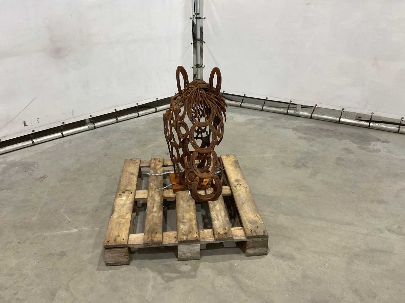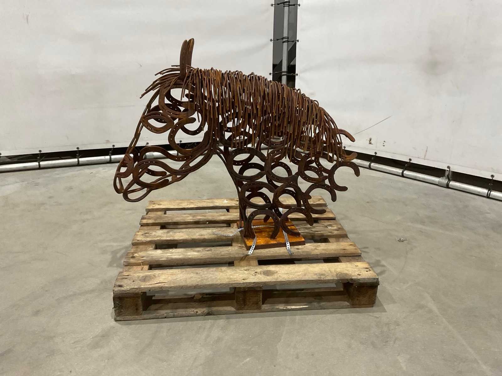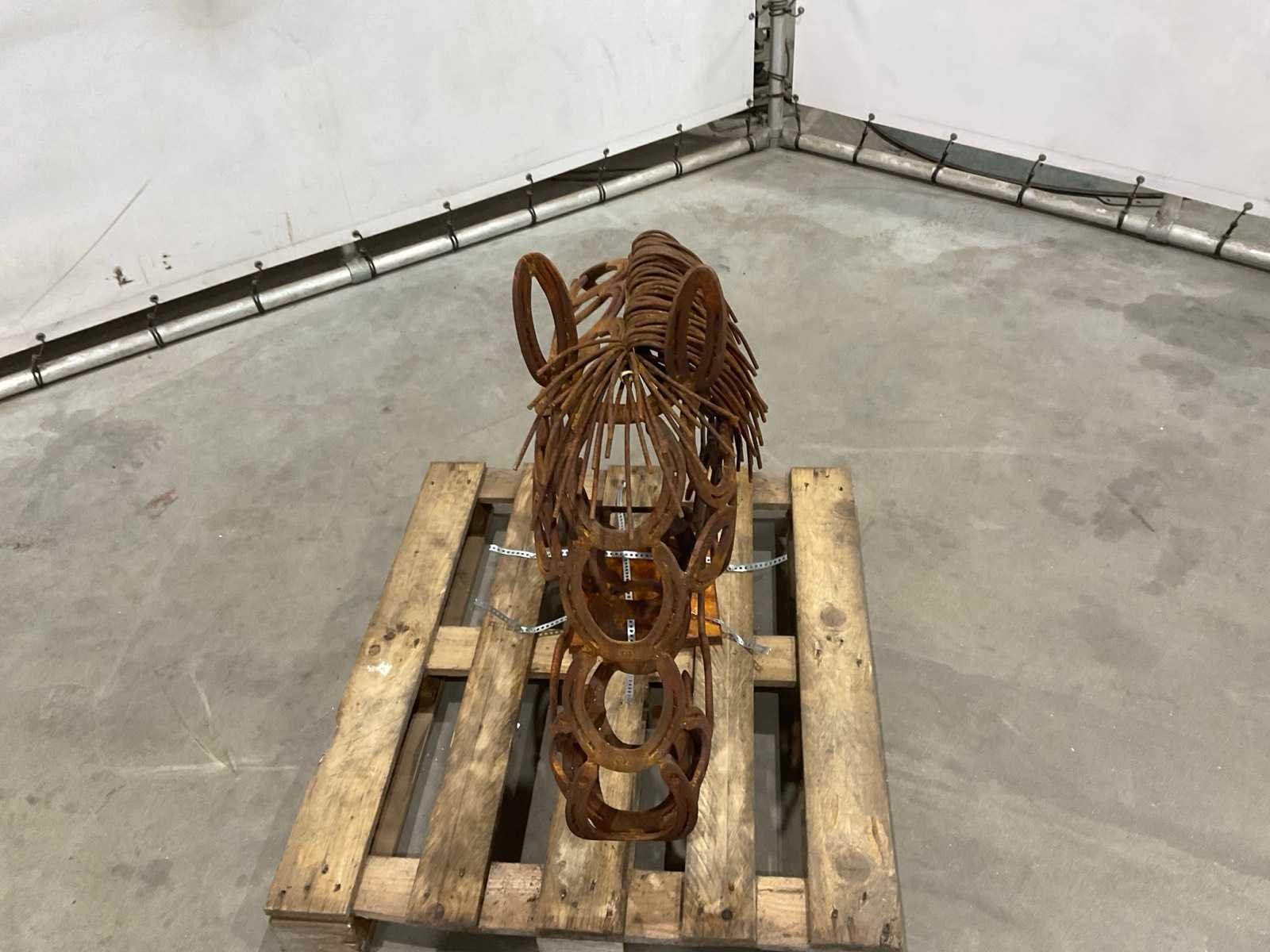Beeld gemaakt van oude hoefijzers Lengte: 100cm Breedte: 25cm Hoogte: 82cm