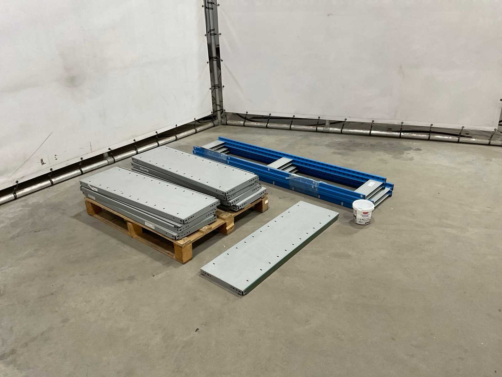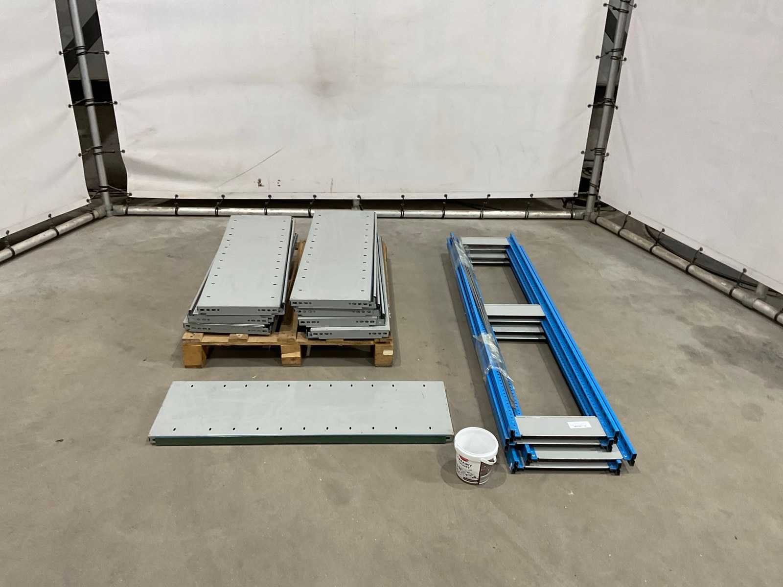 Staanders circa 167 cm hoog; 34 cm breed; legborden circa 99 cm lang ; 31 cm breed Aantal staanders: 4 Aantal legborden: 16