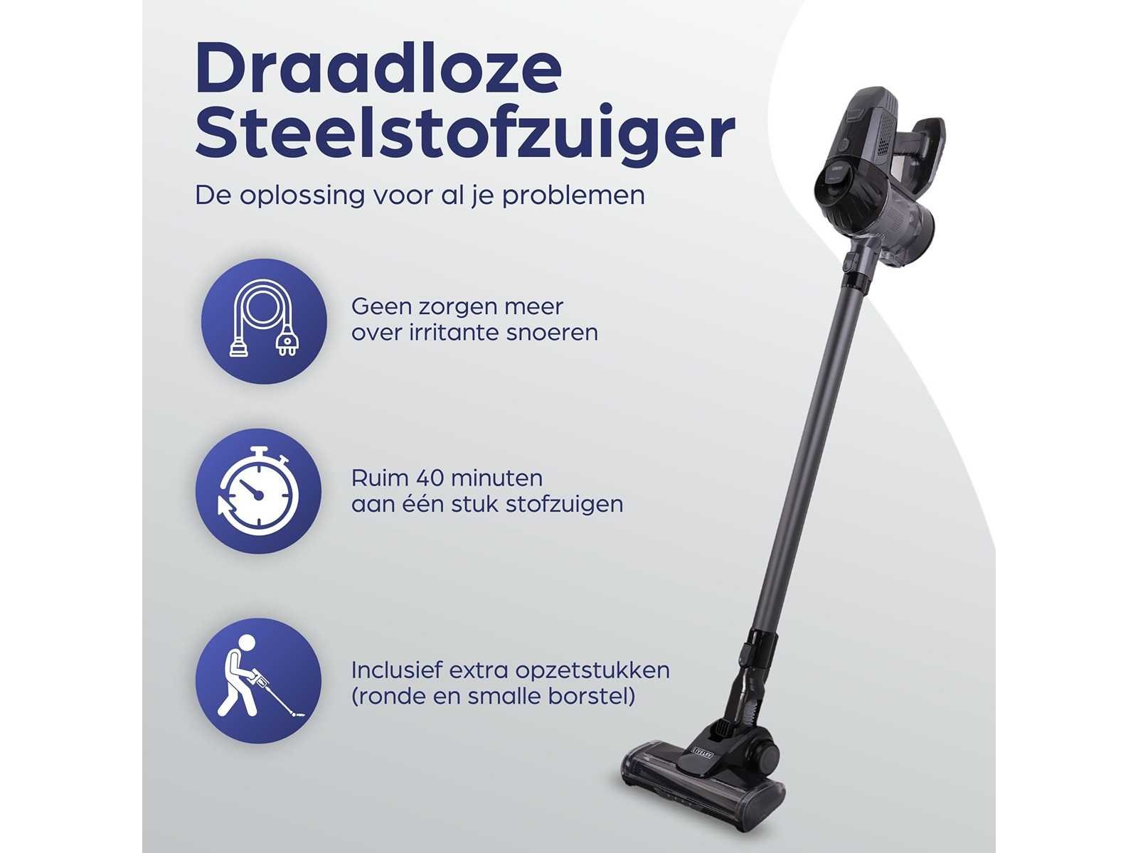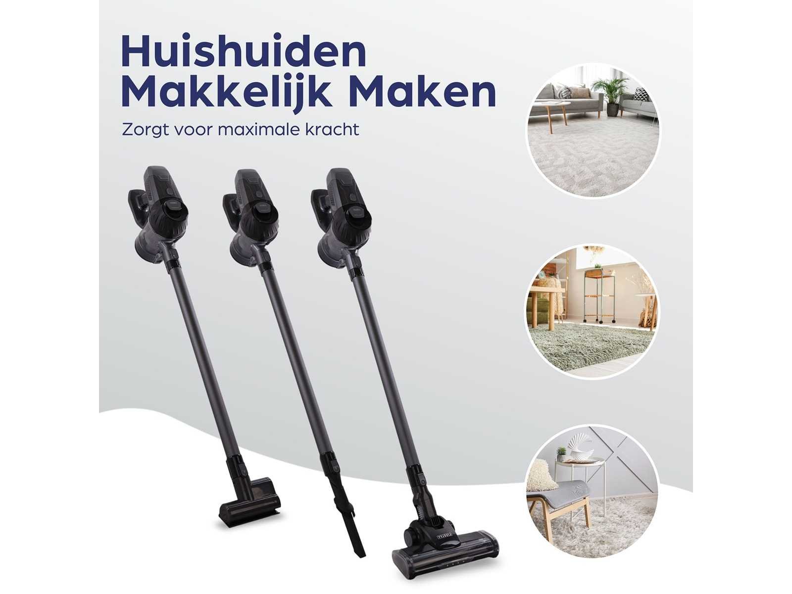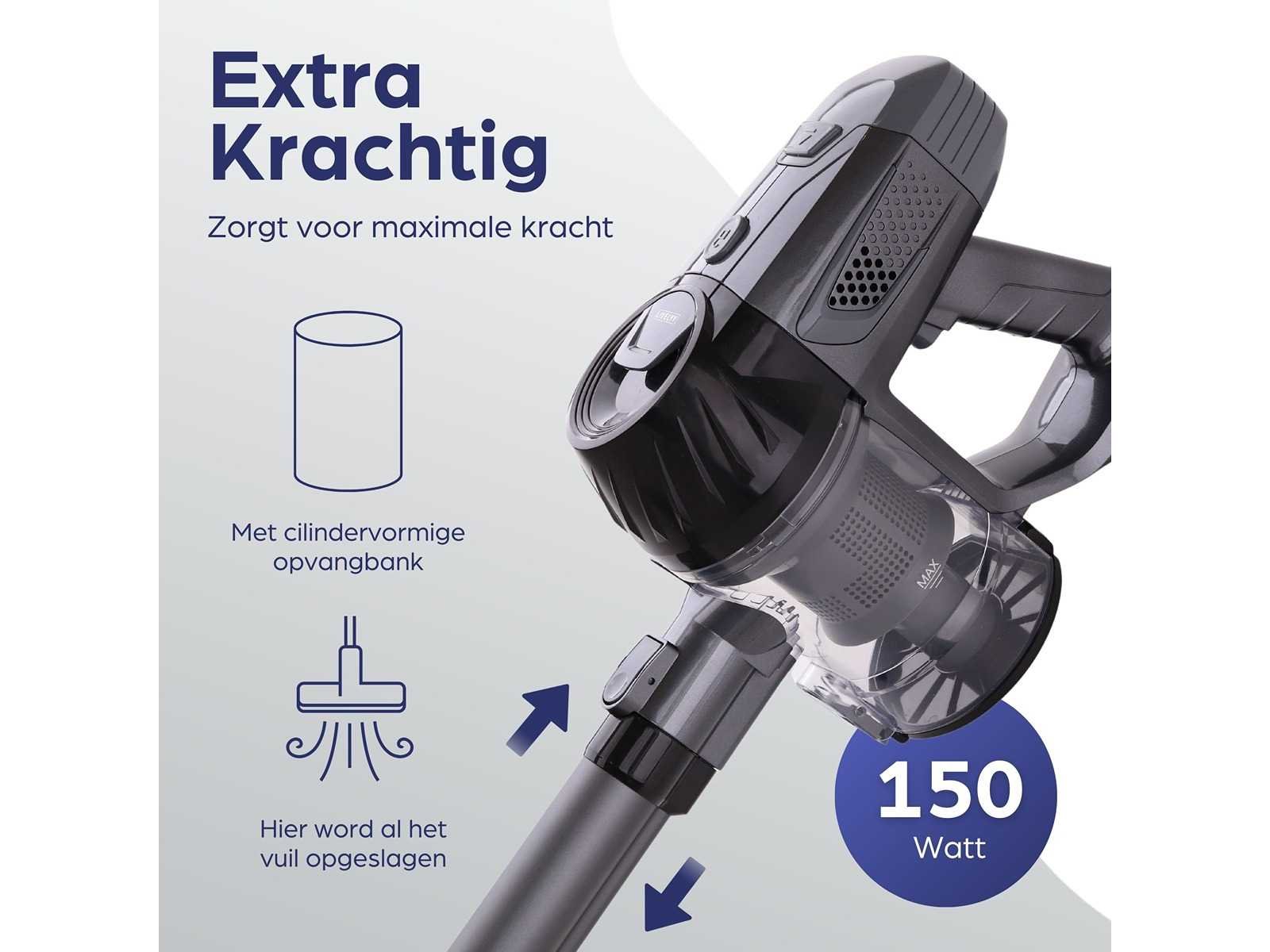 Draadloos, zonder zak, accu, ingebouwde led lamp, hepa filter Vermogen: 150W
