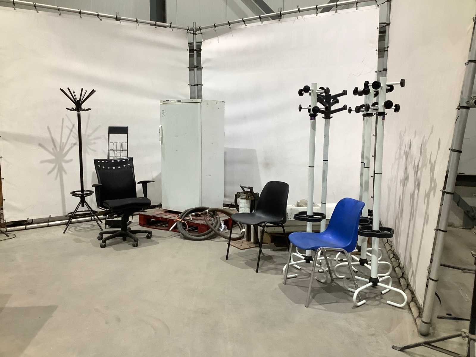 Kavel bevat onder andere diepvries; kapstokken; douche bakken