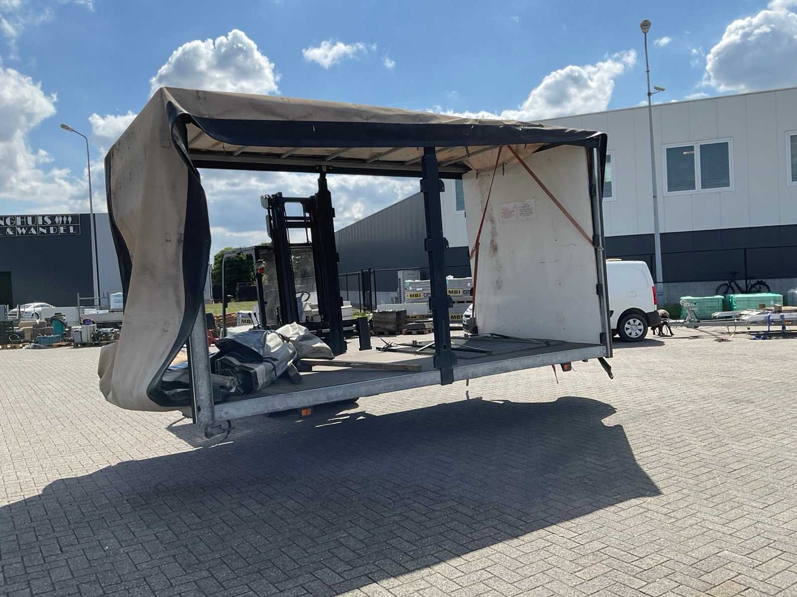 Ter behoeve van aanhanger of bakwagen, inclusief bijhorende zeilen zoals op de foto's te zien is Lengte: 460cm Breedte: 220cm Hoogte: 250cm