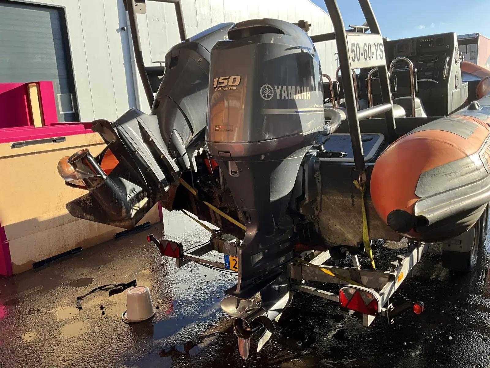 V.v. 2x Yamaha FL150AET (150PK) buitenboordmotor. Incl. dubbelassige boottrailer. Merk: LBT. Kenteken trailer: 29-WJ-RG. LET OP! De aanhanger heeft een kenteken registratie, bij afhalen dient u dit ter plaatse bij een derde partij te naam te stellen of te exporteren, hier zijn extra kosten aan verbonden. Merk: RubberBrigade Model: Tornado Aantal motoren: 2 Type: Tornado Merk motor: Yamaha Lengte: 8,55m Breedte: 2,8m