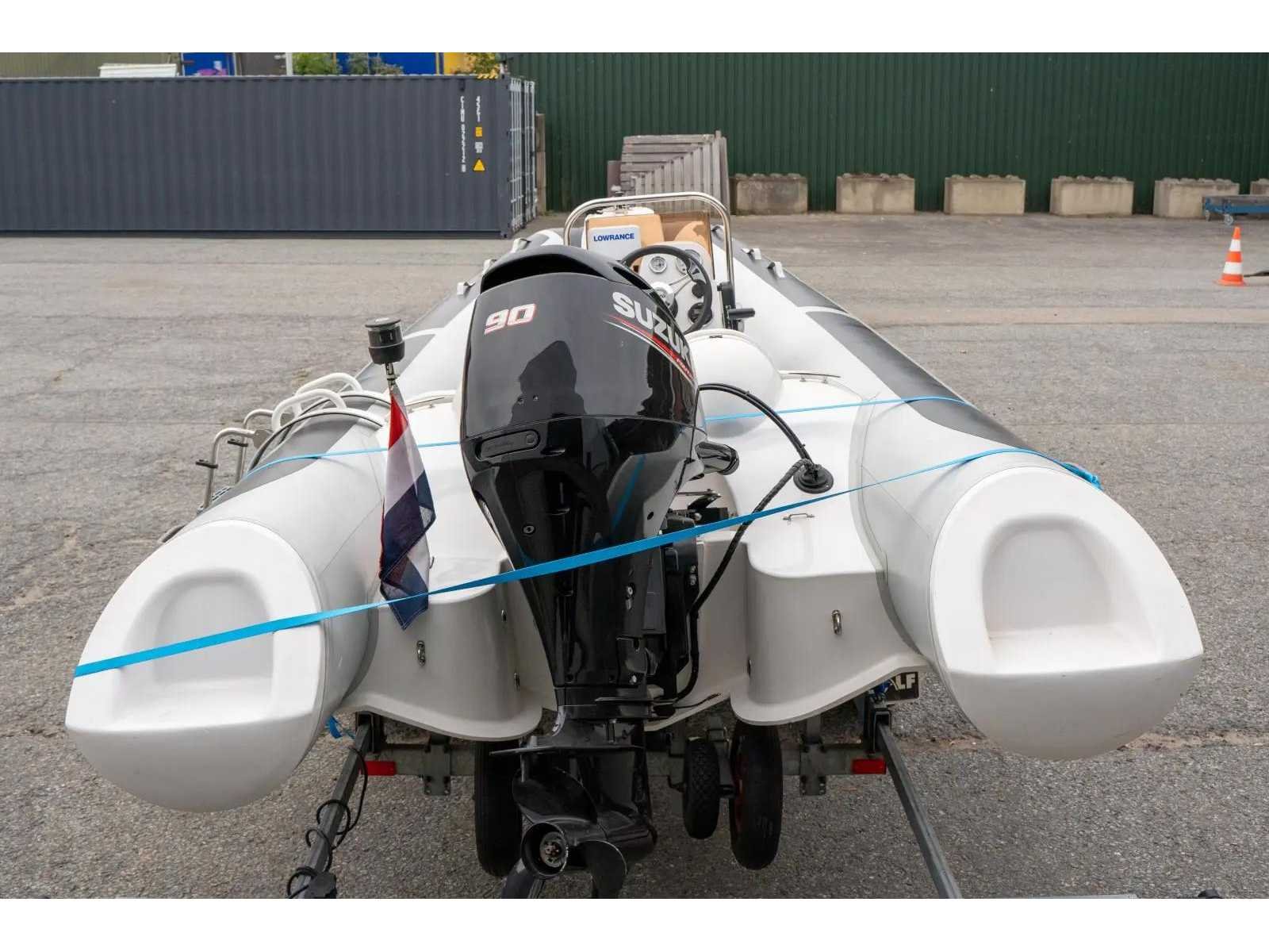 LET OP! Dit voertuig heeft een kenteken registratie, bij afhalen dient u dit ter plaatse bij een derde partij te naam te stellen of te exporteren, hier zijn extra kosten aan verbonden. Merk: Nimarine Type: MX-500 Type motor: Suzuki DF 90 Aantal cilinders: 4 Luchtkamers: 5 Lengte: 500cm Trailer merk + type: KALF G!V1500 Kenteken trailer: 62WKFB