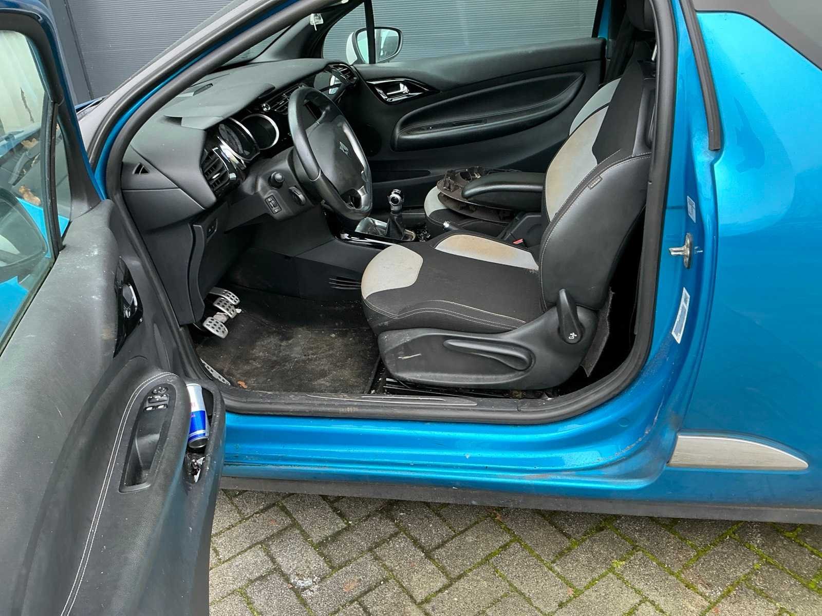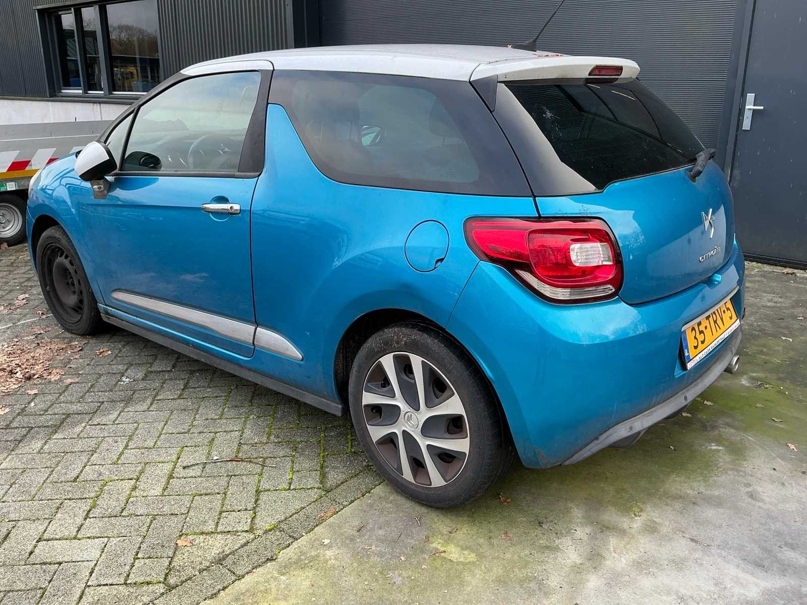 Voertuig heeft rondom schade. Diversen deuken en krassen. Roestplek , schimmel op bekleding, Geen sleutel aanwezig. Kenteken: 35-TRV-5 Merk: Citroen Model: DS3 Type: Hatchback Bouwjaar: 2012 Cilinderinhoud: 1560cc Vermogen (kW): 68kW Brandstof: diesel Tellerstand niet afleesbaar: true Chassisnummer: VF7SA9HPKCW52Q628 Laadvermogen: 0kg Datum eerste toelating: 2012-03-30 Datum eerste toelating (NL): 2012-03-30 APK vervaldatum: 2024-12-15 Vermogen (pk): 92hp Energielabel: B Aandrijving: fwd Aantal zitplaatsen: 5 Maximaal trekgewicht ongeremd: 570kg Maximaal trekgewicht geremd: 1150kg Kleur: blauw Transmissie: Handgeschakeld Accessoires - checkbox: Elektrische ramen. Airco. Armsteun bestuurdersstoel. Cruise control. Stuurwiel: Links Emissieklasse: 5 Aantal deuren: 2 Aantal sleutels: 0 Ledig gewicht: 1060kg Velgmaat: 16 inch Bruto BPM (NL): 0€ Aantal cilinders: 4 Carrosserie: hatchback Nationaliteit documenten: Nederlands. CO2-uitstoot NEDC: 95 Carfax Link: https://was.carfax.eu/v0/api/ccdid/5100016408/svc/201/vinreg/35TRV5/checksum/eyJhbGciOiJIUzI1NiIsInR5cCI6IkpXVCJ9.eyJleHAiOjE3NzA2Mjc3Mjl9.icxaDXb7n7WrXE7JWV5fXOcYARWKpjzSLLft2694iow Start en rijdt: Geen sleutel aanwezig. startinformatie : Geen sleutel aanwezig. Zichtbare schade: Schade passagierskant deur, dorpel en achterscherm. Diverse krassen rondom. Schade achterbumper rechts. No self drive export!: true Airconditioning: true