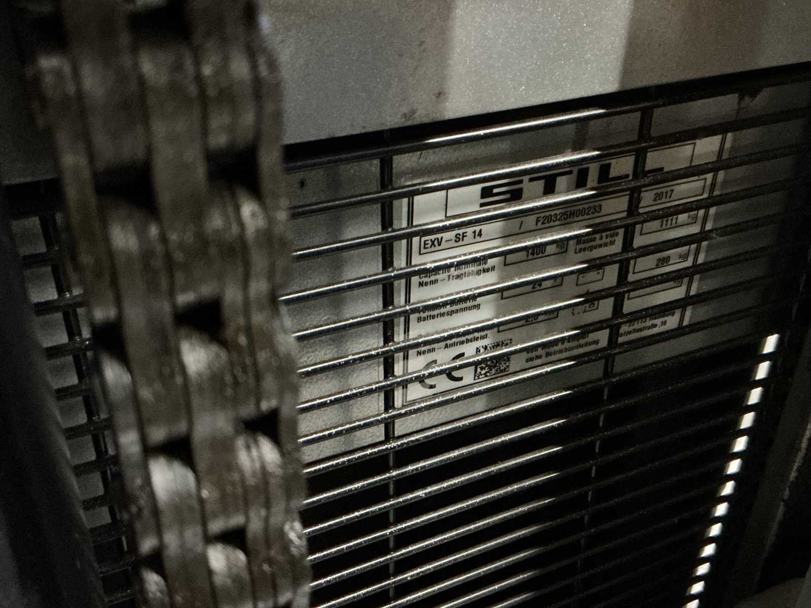 Merk: STILL Type: EXV-SF 14 Bouwjaar: 2017 Serienummer: F20325H00233 Hefvermogen: 1400kg Hefhoogte: 2344mm Lepellengte: 1400mm Afgelezen urenstand: 829 Minimale doorrijhoogte: 1665mm Meerij stapelaar: true