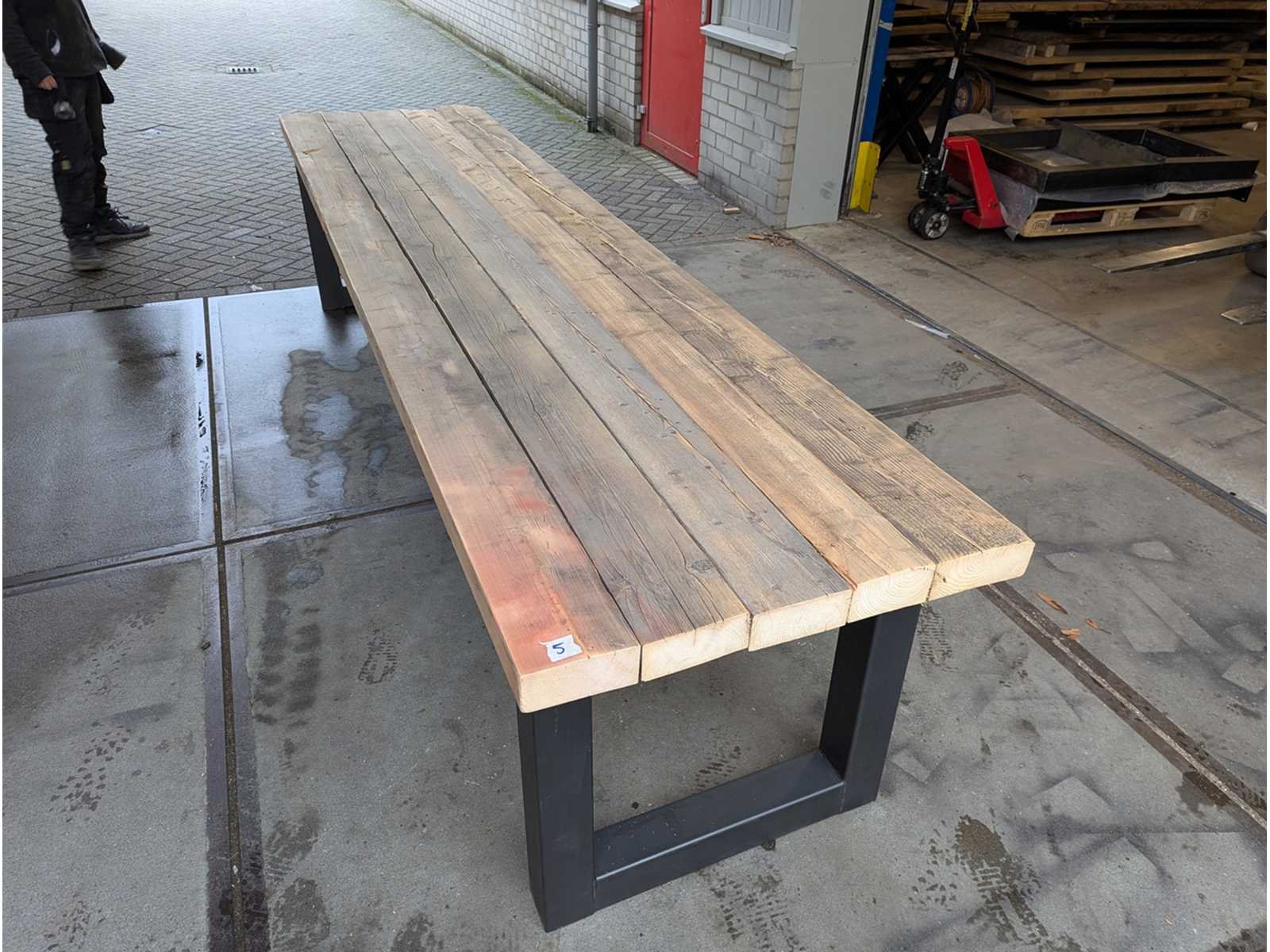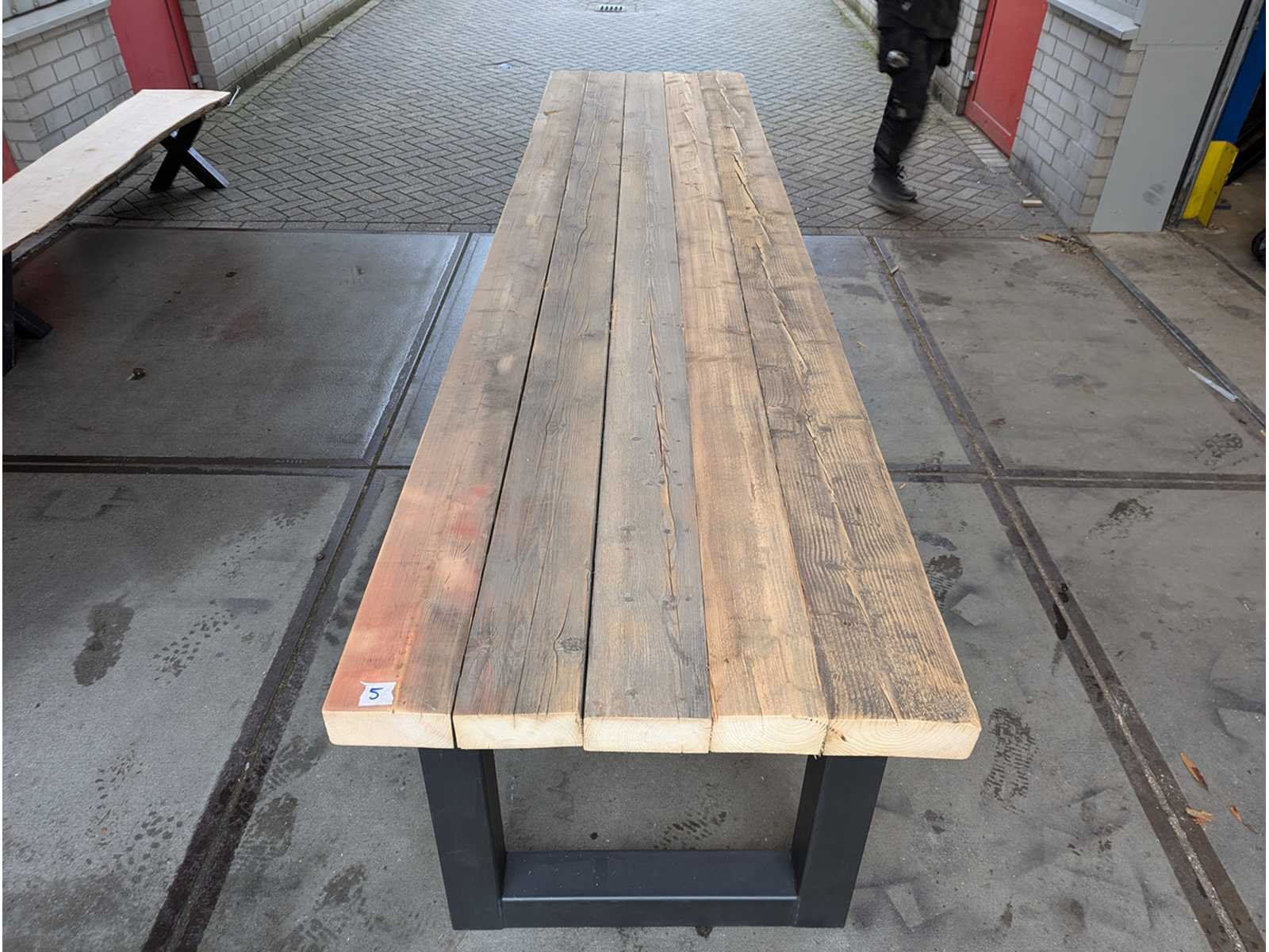 Mega Tafel grenen balken met metalen poot Lengte: 350cm Breedte: 85cm Materiaal: grenen