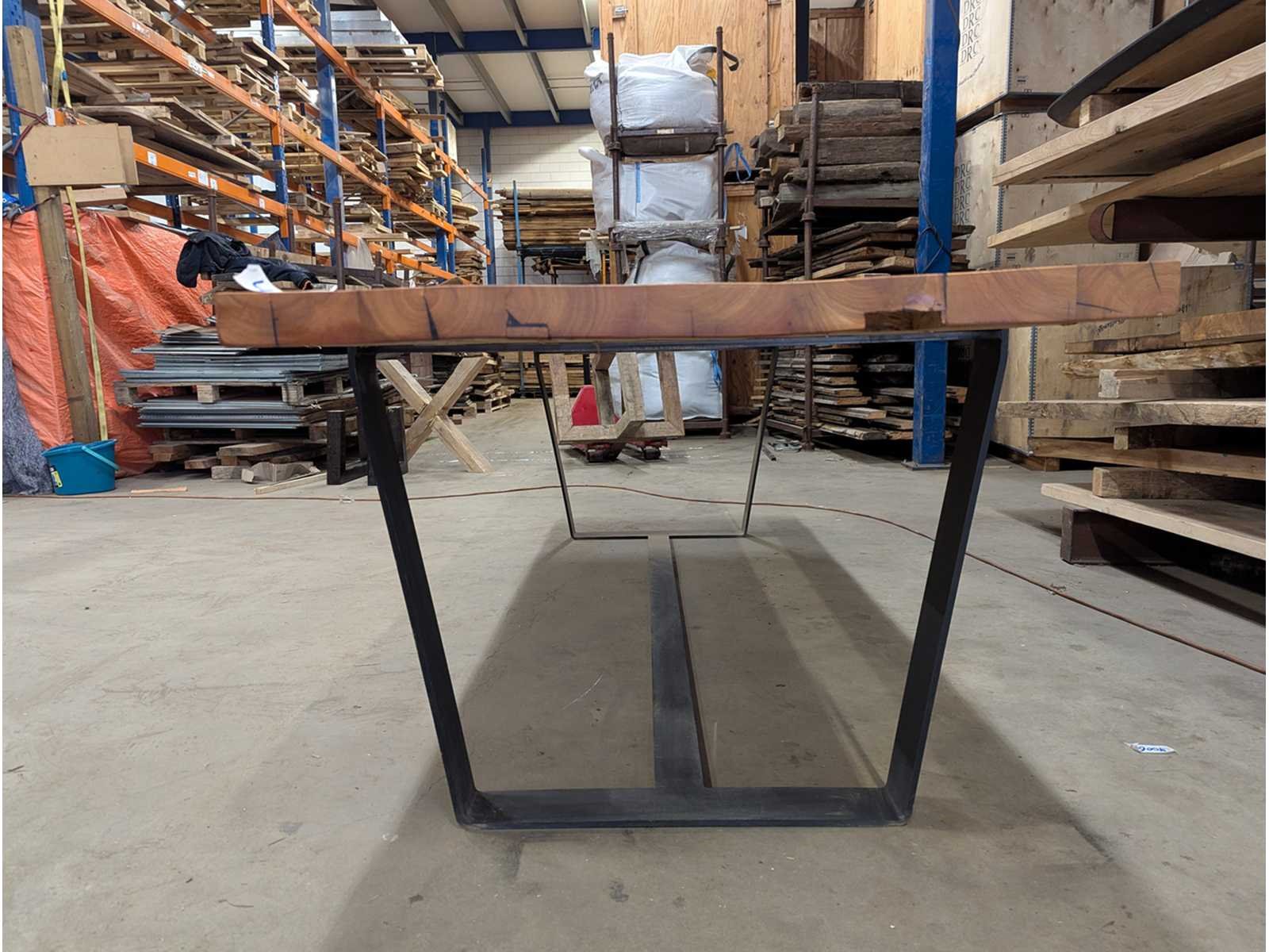 Eettafel oud Iepenhout Metaal onderstel Lengte: 280cm Breedte: 90cm Hoogte: 78cm Materiaal: Iepen