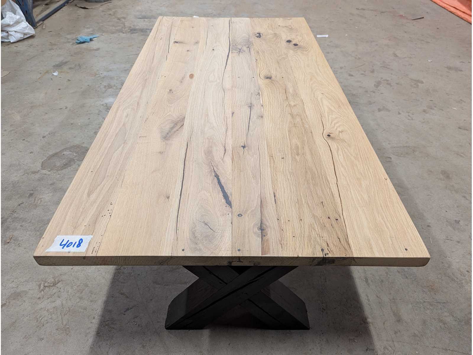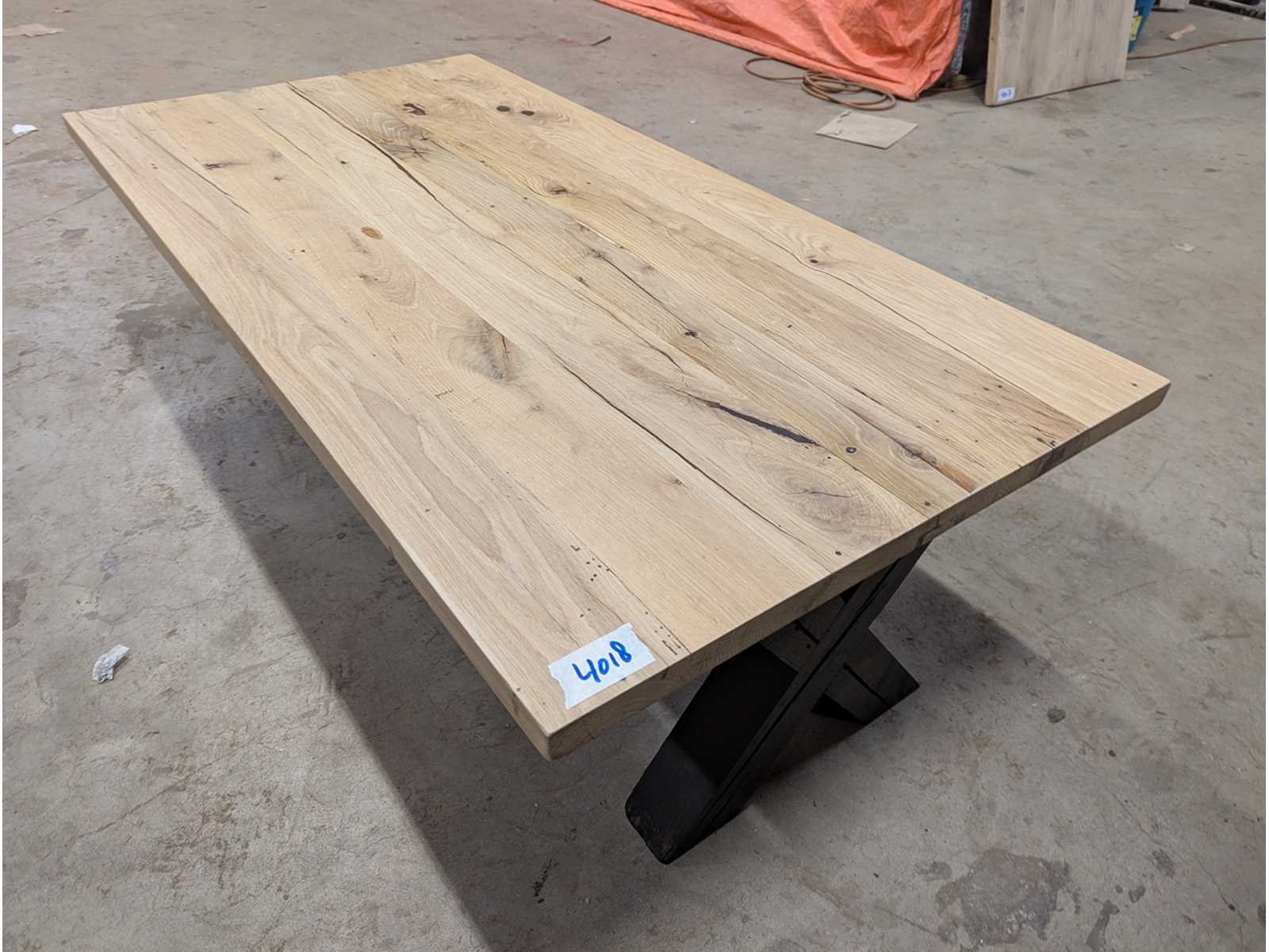 Salontafel oud eiken met epoxy zwart onderstel Lengte: 140cm Breedte: 70cm Hoogte: 45cm Materiaal: Eiken