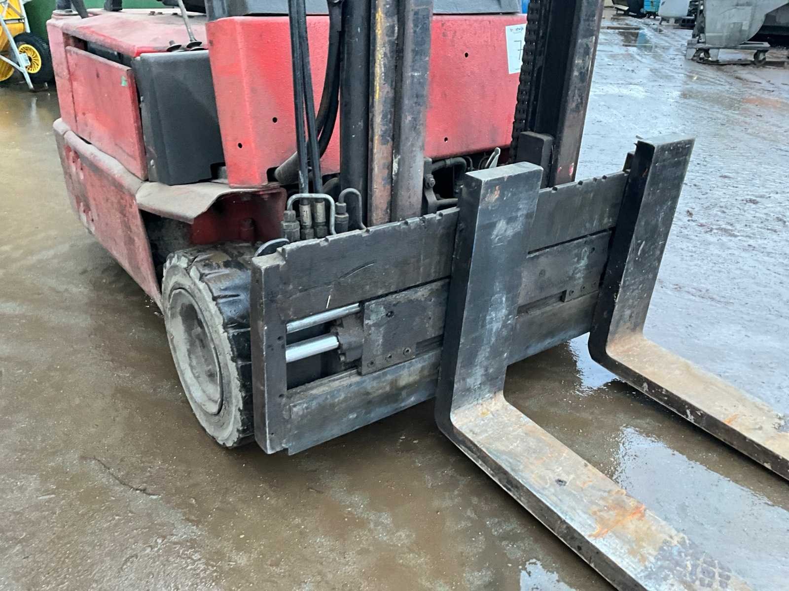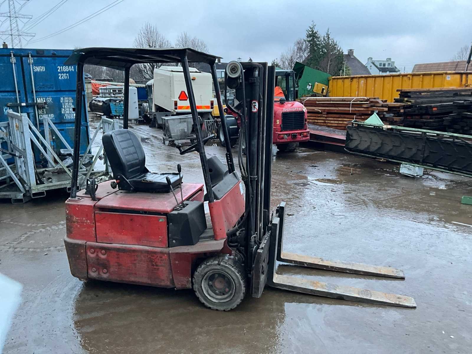 Merk: Linde Brandstof: Elektrisch Aantal wielen: 3 Afgelezen urenstand: 69073 Side-shift: true Hefvermogen: 1500kg Lepellengte: 1100mm Hefhoogte: 2740mm Vol rubber banden: true Minimale doorrijhoogte: 1930mm Totale afmeting Breedte: 1100mm