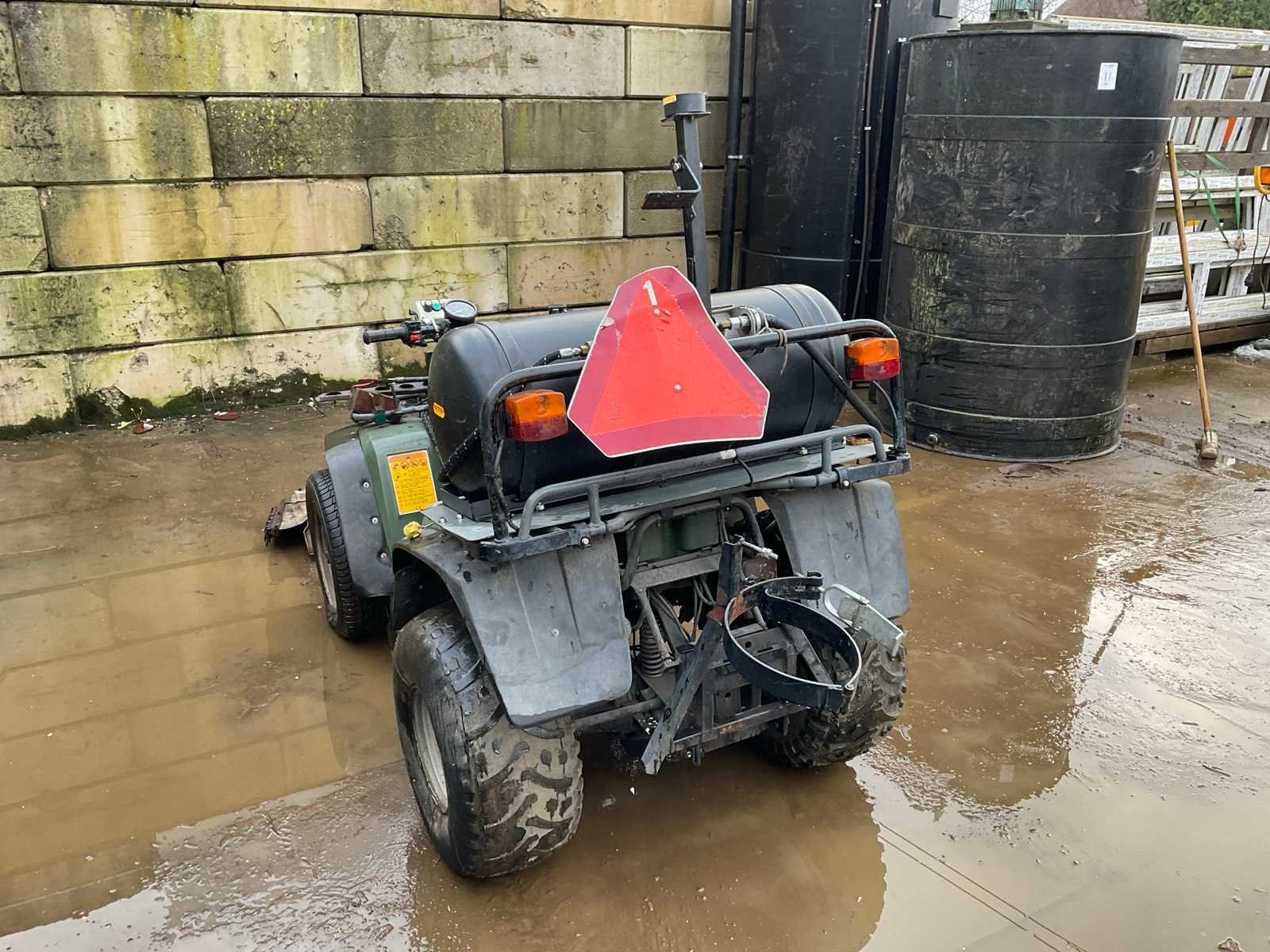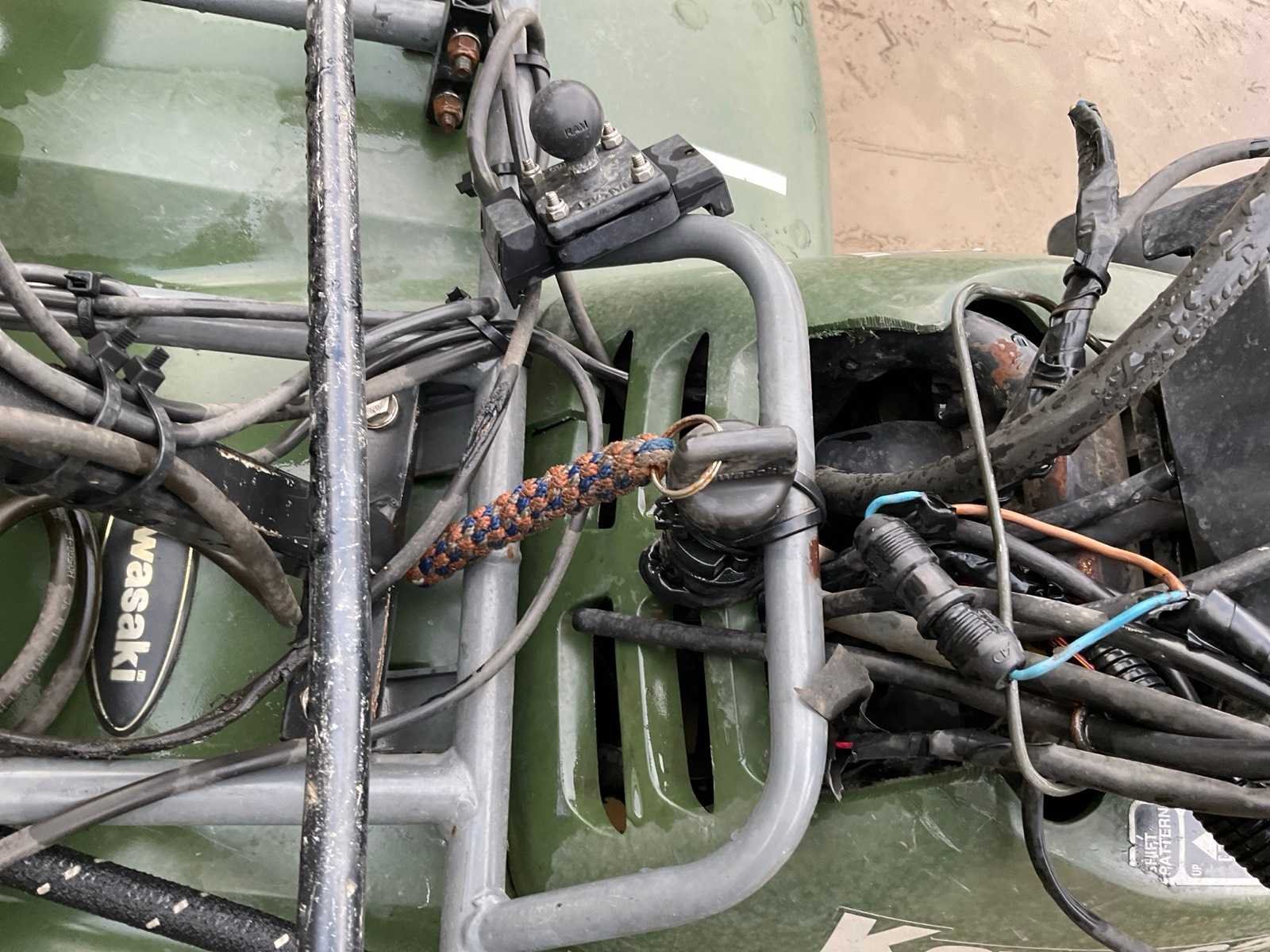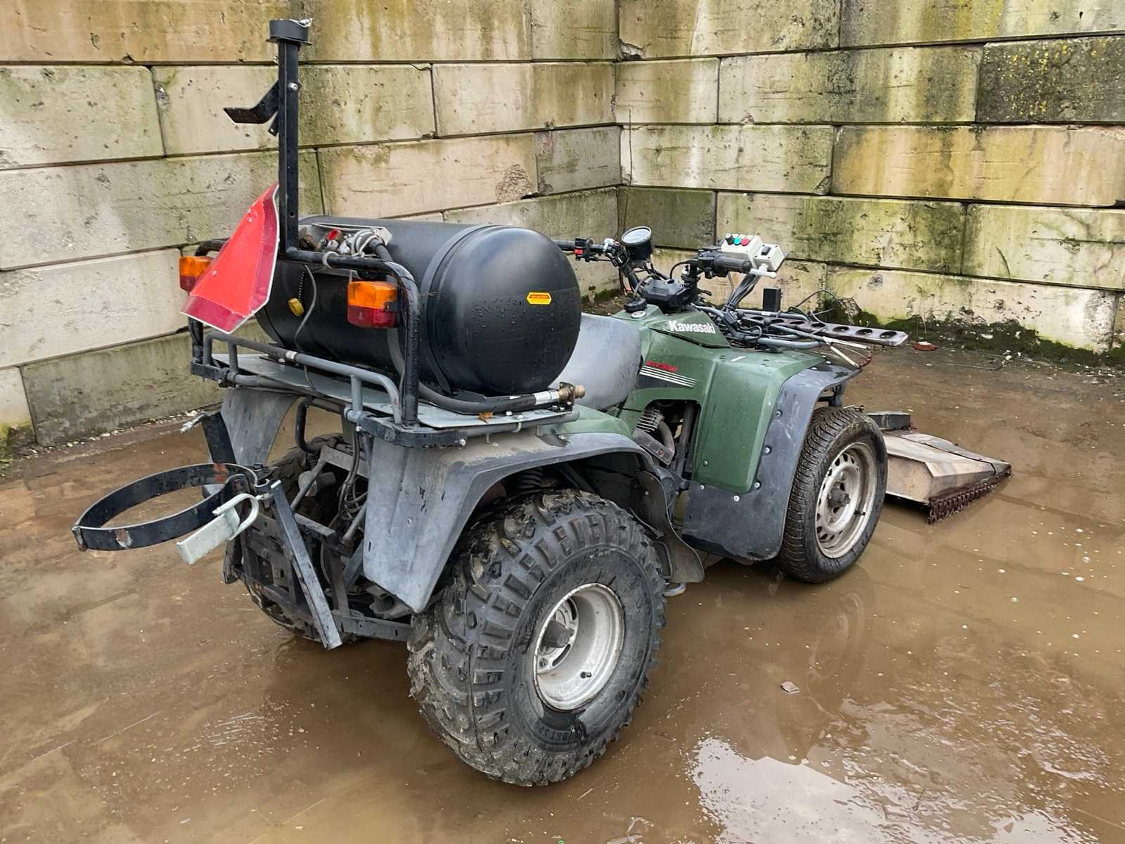 Inclusief onkruidbrander LPG, tank, hef brander afgebroken, werking onbekend. Merk: Kawasaki Model: KLF 300 Chassisnummer niet afleesbaar: true Aantal zitplaatsen: 1 Aantal sleutels: 1 Afgelezen kilometerstand: 14789km Kleur omschrijving: Groen