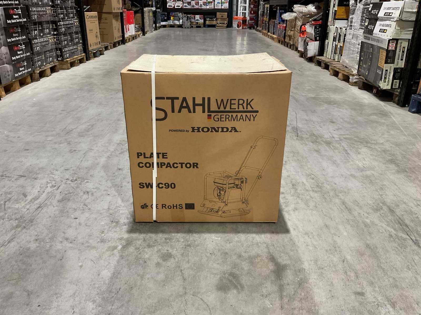 Voorzien van honda fx160 benzinemotor; 163cc motorinhoud; 4,8 pk; trekstart; werkbreedte trilplaat 450 mm; slagkracht 20 kN; werksnelheid 20 m/min; ca 450 m²/uur; 90kg machinegewicht; nieuw in doos Merk: Stahlwerk/Honda Type: SW-C90 Bouwjaar: 2025 Bedrijfsgewicht: 90kg Grondplaat afm. l: 640mm Grondplaat afm. b: 480mm Centrifugale kracht: 20kN Merk motor: Honda Eigen gewicht: 90kg Totale afmeting L: 645mm Totale afmeting Breedte: 485mm Totale afmeting Hoogte: 680mm