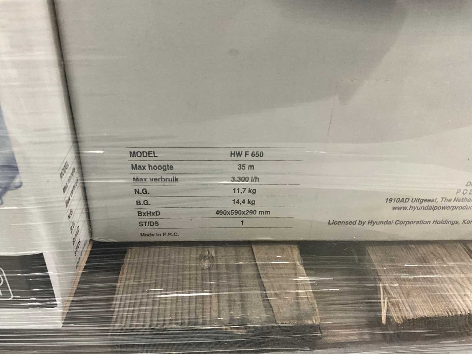 Merk: Hyundai Type: 57806 Vermogen: 0.65kW Capaciteit.: 3300l/hr H-max.: 35m Aansluiting: 230V