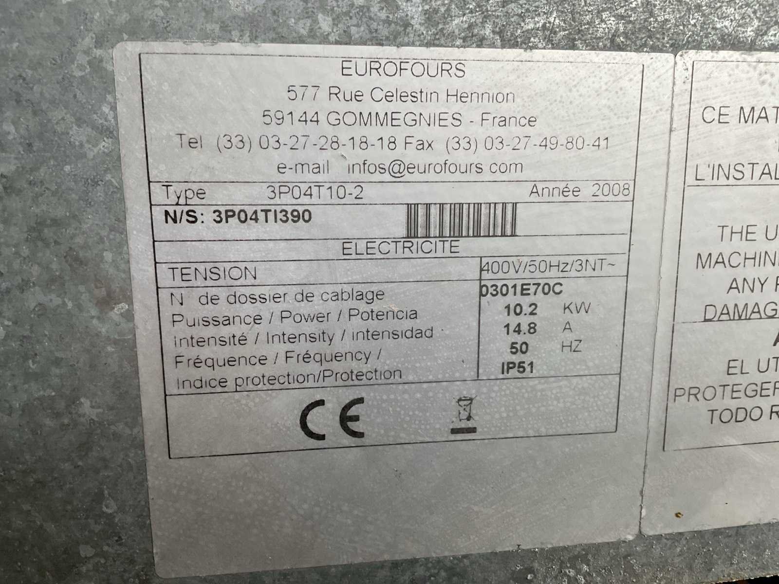 Op verrijdbaar RVS onderstel. Merk: Eurofours Type: 3P04TI390 Elektrisch: true Digitale besturing: true Aansluiting: 380V Totale afmeting L: 990mm Totale afmeting Breedte: 820mm Totale afmeting Hoogte: 1680mm