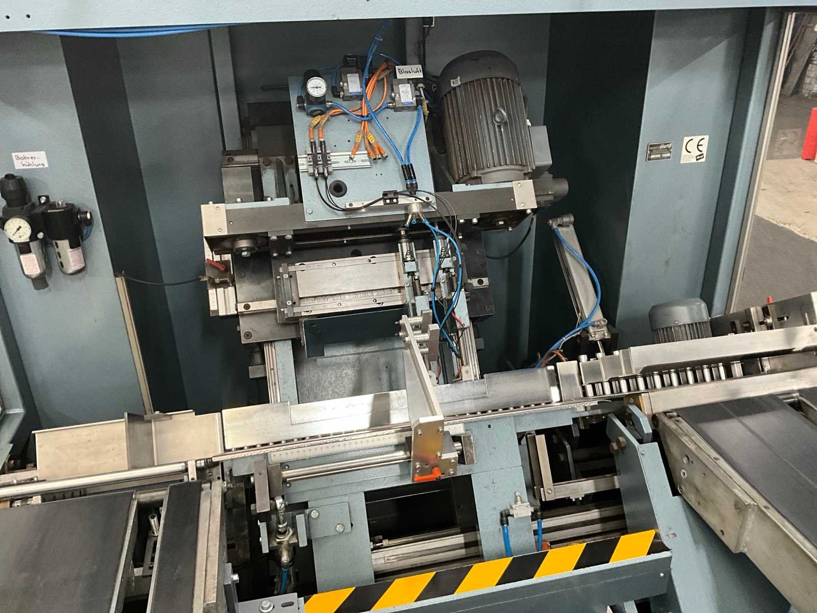 Voorzien van aanvoer en afvoerband 1400x310 mm, programmeerbare en automatische machine Merk: Hang Type: 240-00 Bouwjaar: 2002 Aantal boorkoppen: 2 Aansluiting: 380V Totale afmeting L: 2700mm Totale afmeting Breedte: 2000mm Totale afmeting Hoogte: 1650mm