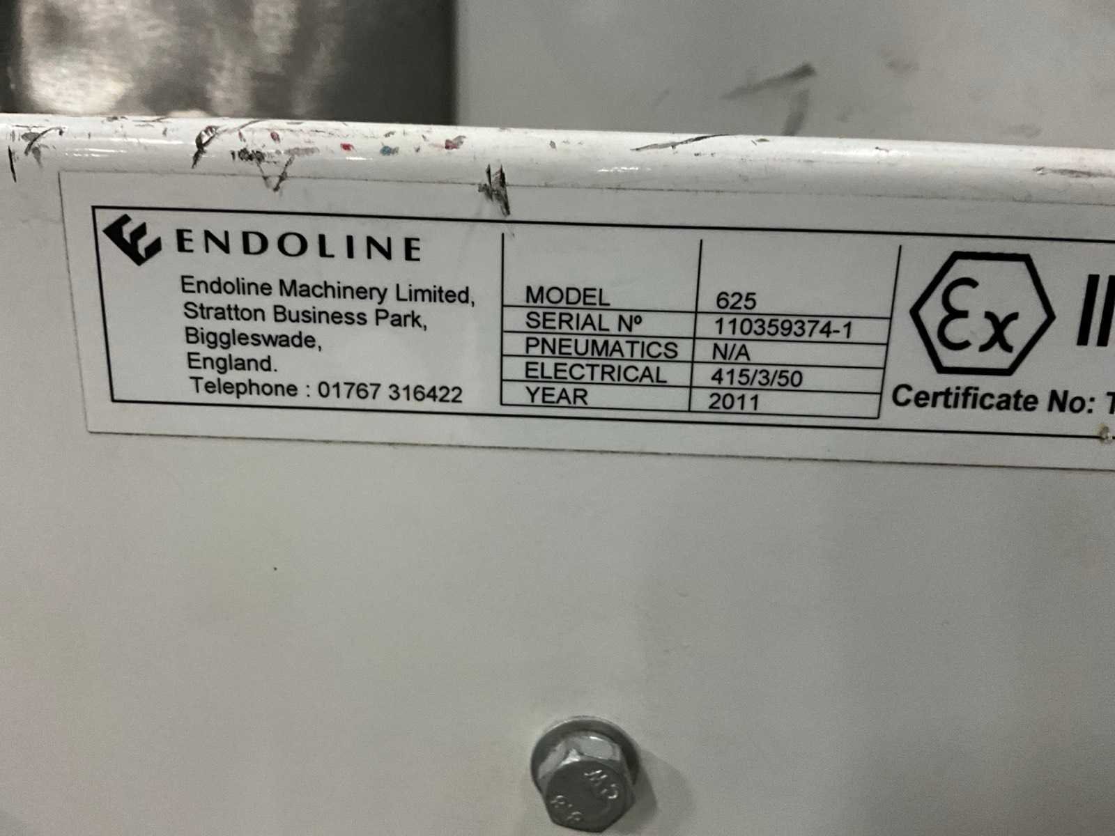 Merk: Endoline Type: 625 Bouwjaar: 2011 Max. formaat l: 500mm Max. formaat b: 450mm Aansluiting: 380V Totale afmeting L: 1600mm Totale afmeting Breedte: 1100mm Totale afmeting Hoogte: 1600mm