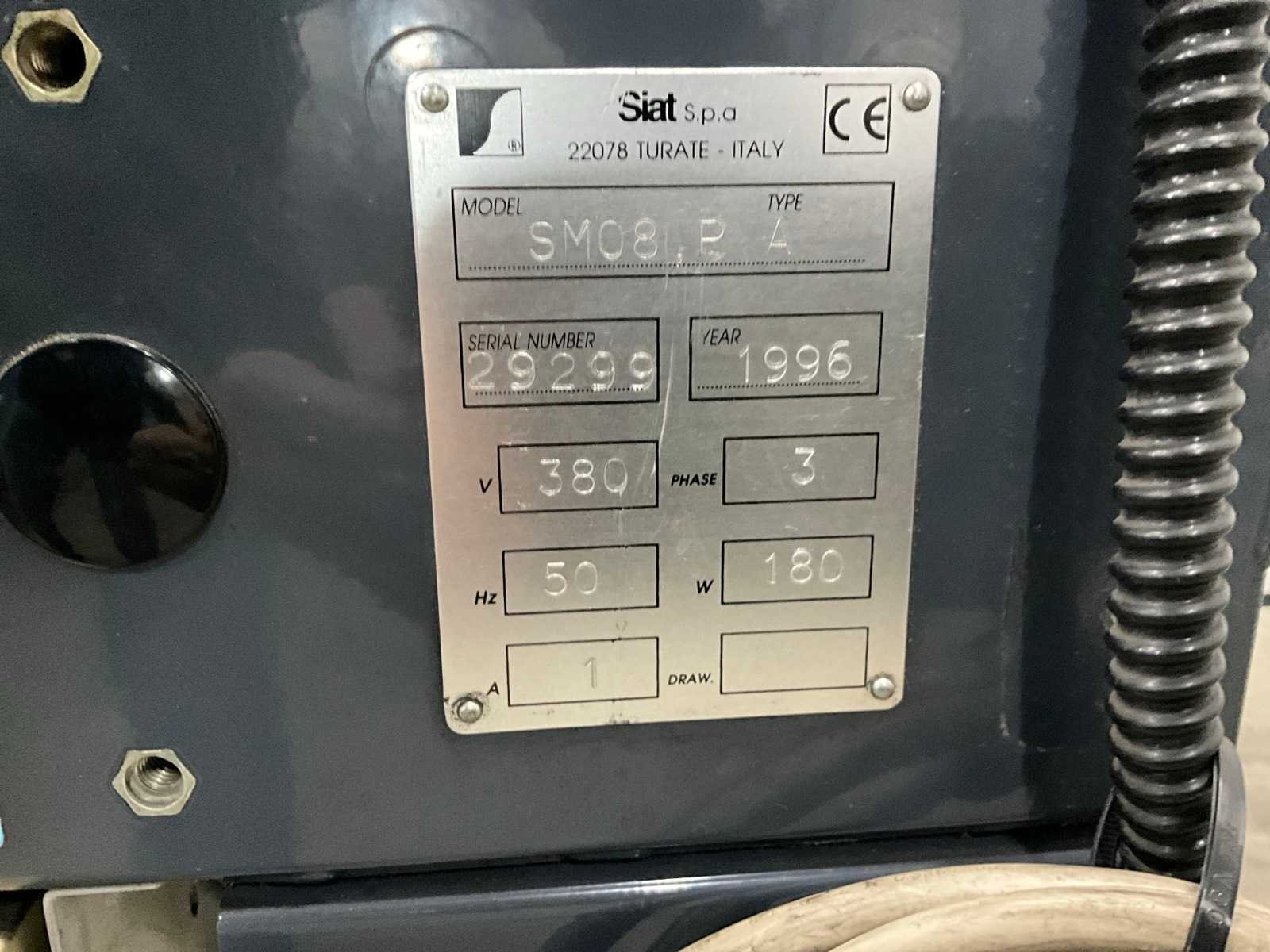 Merk: Siat Type: SM081.P Bouwjaar: 1996 Max. formaat b: 450mm Aansluiting: 380V Totale afmeting L: 1500mm Totale afmeting Breedte: 600mm Totale afmeting Hoogte: 1200mm