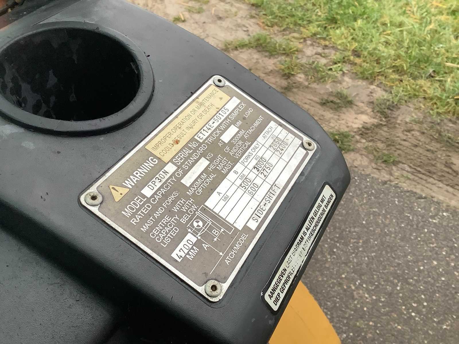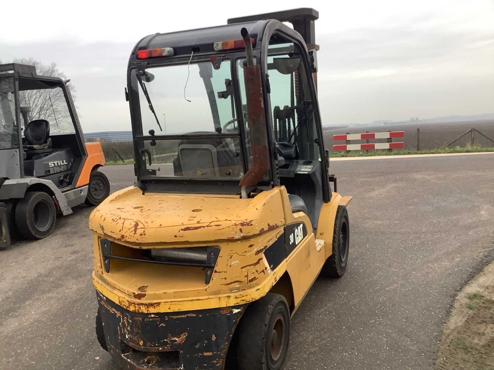 Start rijd en remt Merk: Cathapilar Type: dp35n Bouwjaar: 2004 Brandstof: Diesel Mast: Triple Soort band: Volrubber banden Aantal wielen: 4 Afgelezen urenstand: 9683 Free-lift: true Side-shift: true Triple mast: true Hefvermogen: 3500kg Lepellengte: 1350mm Max. hefhoogte: 4700mm Vol rubber banden: true