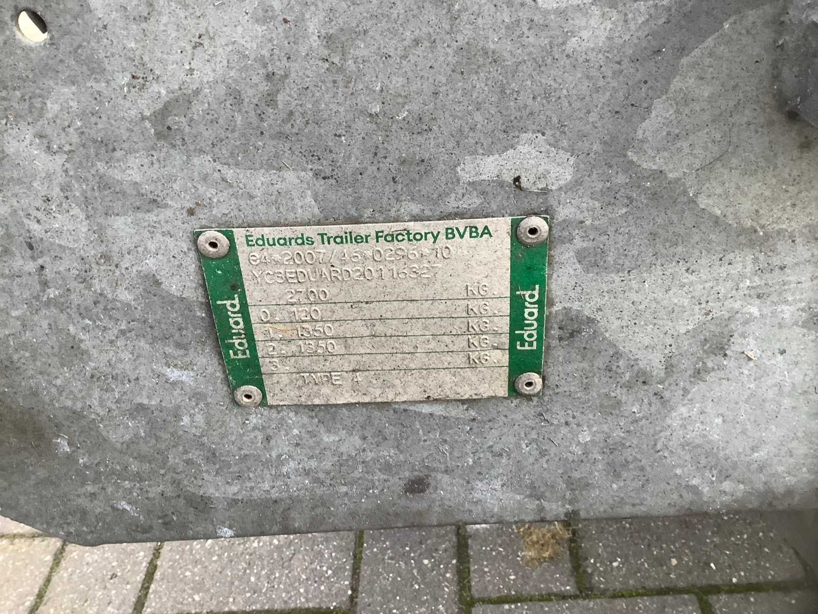 Merk: Eduard Bouwjaar: 2020 Aantal assen: 2 Ledig gewicht: 631kg Laadvermogen: 2069kg Datum eerste toelating: 2020-12-30 Datum eerste toelating (NL): 2020-12-30 Kenteken: 74-WX-VT Kentekenpapieren compleet?: true Hoogte: 80cm Lengte: 4050cm Breedte: 200cm Zelf rijdend exporteren: Mogelijk