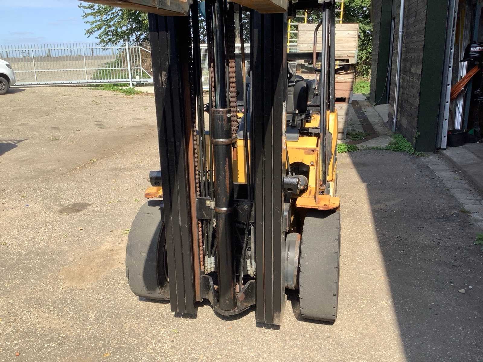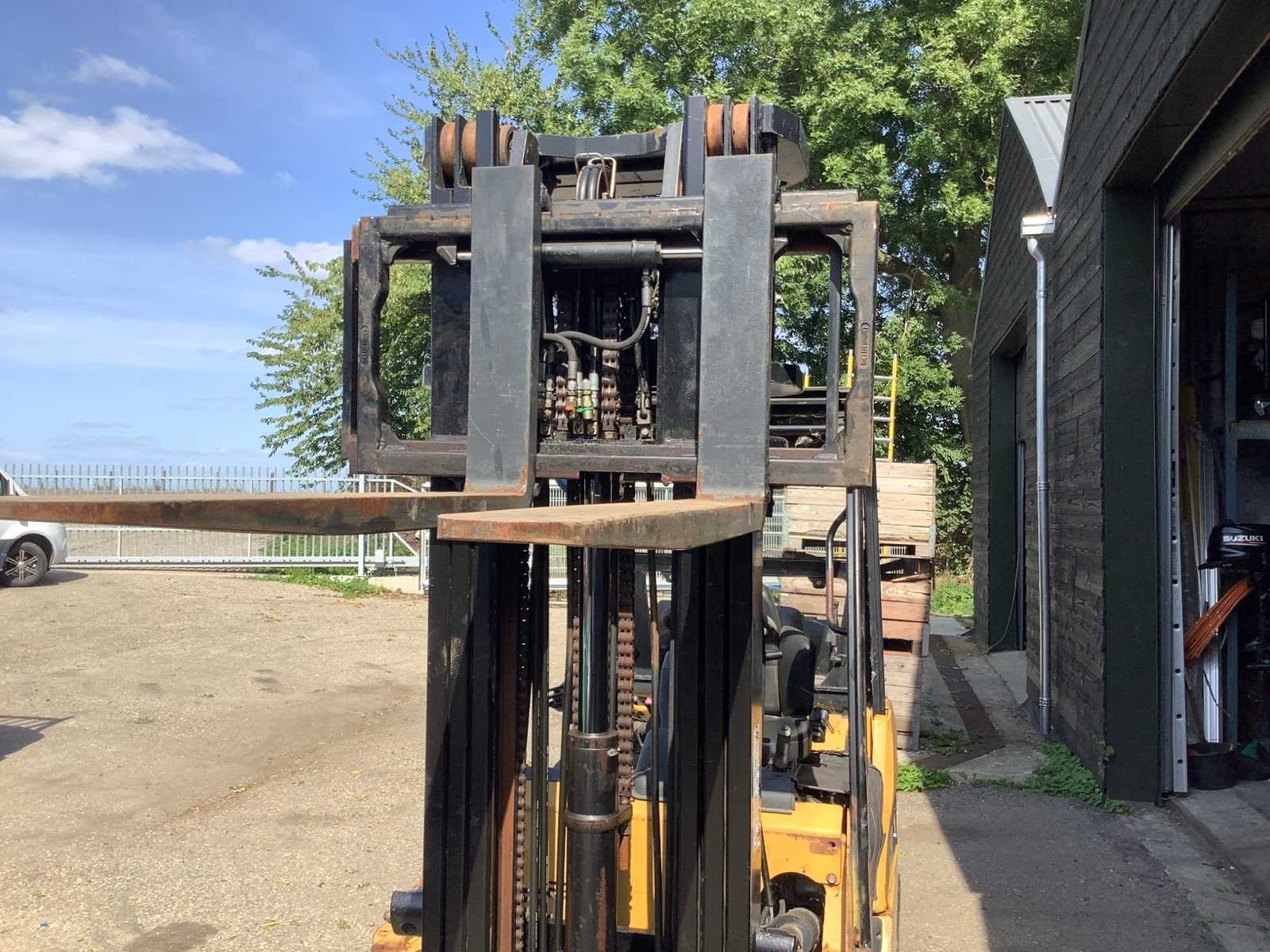 Start rijd voor en achteruit voert alle functies uit zonder gasfles Merk: Cathapilar Type: GP35n Bouwjaar: 2009 Serienummer: 50408 Brandstof: LPG Mast: Triple Soort band: Volrubber banden Aantal wielen: 4 Afgelezen urenstand: 9783 Free-lift: true Side-shift: true Triple mast: true Eigen gewicht: 5000kg Hefvermogen: 3500kg Lepellengte: 1300mm Max. hefhoogte: 5580mm Hefhoogte: 5580mm Vol rubber banden: true Minimale doorrijhoogte: 2600mm Totale afmeting Hoogte: 2600mm