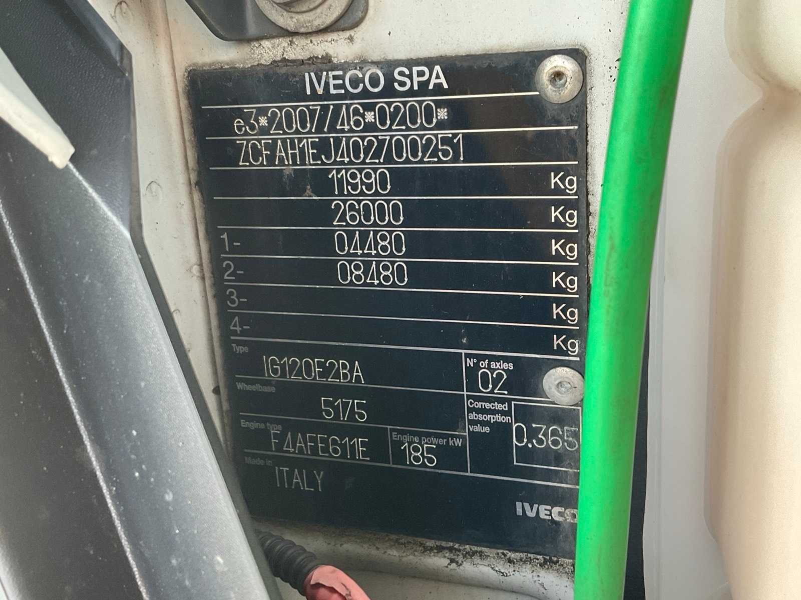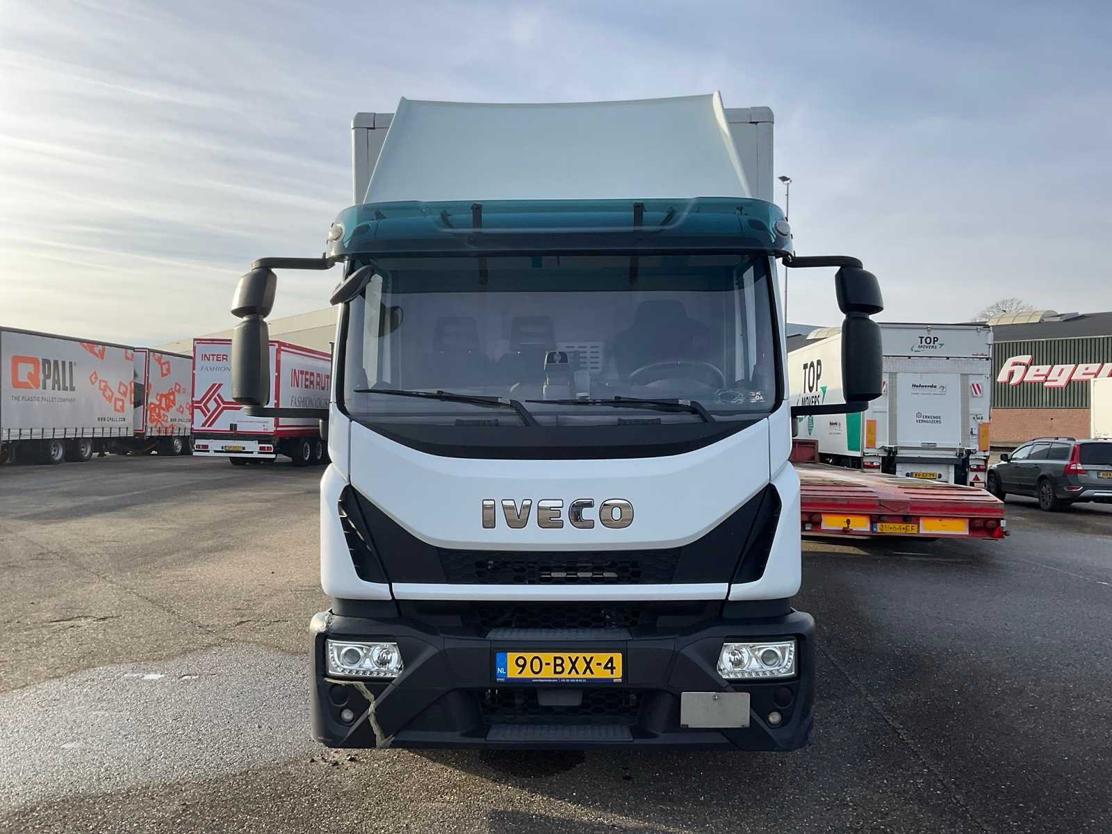Euroklasse 6, transmissie automaat, motorrem, luchtvering, banden voorasHankook 285/70R19,5, achteras: Hankook 245/70/R19,5, Dieseltank rechts, Ad blue tank rechts, accubak links, Ringfeder aanhangwagenkoppeling, verlichting aansluiting 15 polig, luchtaansluiting, ABS/EBS aansluiting, dagcabine, 3-persoons, Cabine mechanisch geveerd, centrale deurvergrendeling, afstandbediening, zonneklep, dakspoiler, chauffeursstoel luchtgeveerd, Tachograaf merk Stoneridge, snelheidsbegrenzing, radio cd, Tollcollect kastje. Laadbak: 750x245x235 cm. Laadklep: Dautel DFL 1500 kg, 2019. Kenteken: 90-BXX-4 Merk: Iveco Type: 120E Bouwjaar: 2020 Chassisnummer VIN: ZCFAH1EJ402700251 Cilinderinhoud: 6728cc Kilometerstand bij opname: 415585km APK vervaldatum: 2025-07-31 Datum eerste toelating: 2020-05-14 Datum eerste toelating (NL): 2024-07-06 Aantal assen: 2 Asconfiguratie: 4x2 Laadvermogen: 5110kg Aantal sleutels: 1 Emissieklasse: 6 Hydraulische laadklep: true Totale afmeting L: 9350mm Totale afmeting Breedte: 2550mm Totale afmeting Hoogte: 3600mm Nationaliteit documenten: Nederlands Aantal zitplaatsen: 3 Automaat: true Diesel: true No self drive export!: true