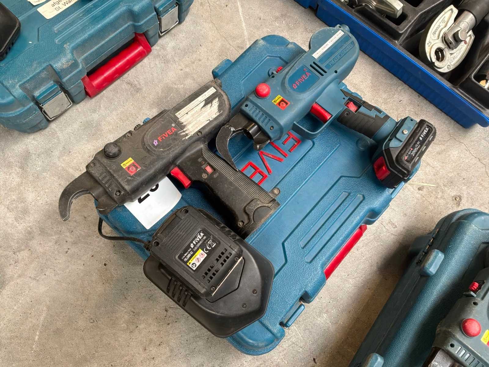 2 type accu vlechtmachines: 1x RT308C, cap. Ø 8-37 mm, 1x RT308, cap. Ø 8-33 mm Merk: FIVEA Type: RT308 Aantal accu's: 1 Accu lader: true Met koffer: true