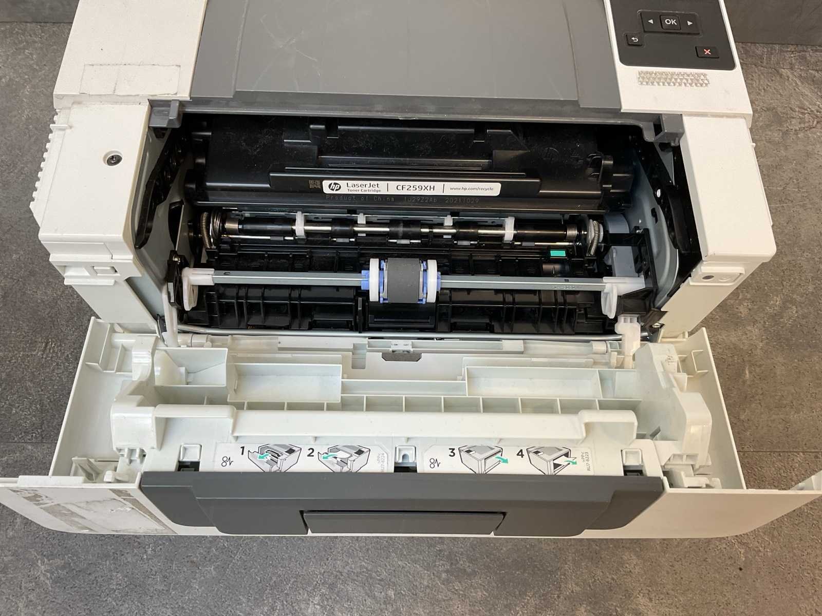 Met stroomkabel Merk: Hp Type: Laserjet pro M404dn Model: CF259XH Kleur: Wit Lengte: 38cm Breedte: 36cm Hoogte: 20cm