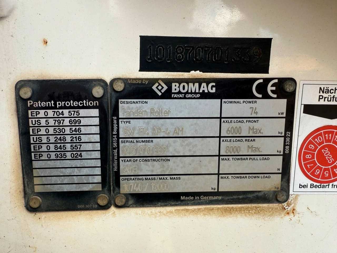 Het aangeboden object betreft een Bomag BW 174 AP-4 AM grondwals uit bouwjaar 2013. Dit type wals is ontwikkeld voor het verdichten van funderingen, asfaltlagen en oppervlakken binnen wegenbouwprojecten en civiele toepassingen. De machine is uitgerust met stalen rollen en beschikt over een trilsysteem. Volgens de beschikbare gegevens en fotomateriaal is de machine visueel compleet aanwezig en vrij van zichtbare schade. De afgelezen urenstand bedraagt 7478 uur. Technische functies, motorconditie, hydraulica, elektronica en compactorwerking zijn door ons niet getest. Een technische inspectie door de koper wordt geadviseerd. Duits geregistreerd Alle genoemde informatie is uitsluitend gebaseerd op algemeen bekende modelkenmerken en de zichtbare gegevens van dit specifieke exemplaar. Koper dient zelf te verifiëren of deze gegevens volledig en correct zijn. Merk: Bomag Model: BW 174 AP-4 AM Walze 12 Ton Bouwjaar: 2013 Merk motor: Kubota Motorvermogen (kW): 74kW Aantal cilinders: 4 Brandstof: diesel Afgelezen urenstand: 7478 Eigen gewicht: 10.740kg