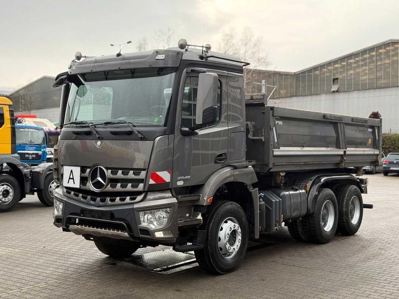 Robuuste Mercedes-Benz Arocs 3345 kiepwagen, uitgevoerd in 6x6-configuratie en voorzien van Bordmatik-opbouw. Deze truck is ontworpen voor zwaar inzetbaar werk in onder meer grondverzet, bouw en infrastructuur. De wagen is uitgerust met een krachtige Euro 6 dieselmotor met een vermogen van 331 kW (450 pk) en een automatische transmissie, wat zorgt voor comfortabel en efficiënt rijden onder zware omstandigheden. Dankzij de permanente vierwielaandrijving (6x6) biedt de Arocs uitstekende tractie op onverhard terrein. Merk: Mercedes-Benz Type: Arocs 2646 Bouwjaar: 2018 Cilinderinhoud: 6cc Kilometerstand bij opname: 221774km Datum eerste toelating: 01-06-2018 Type transmissie: Automatisch Aantal assen: 6 Asconfiguratie: 4 Fuel Type: Diesel Laadvermogen: 13767kg Aantal sleutels: 2 Emissieklasse: 6 Hydraulische laadklep: true Navigatie: true Eigen gewicht: 26000kg Nationaliteit documenten: Duits Kentekenpapieren compleet?: true Aantal zitplaatsen: 2 Automaat: true Diesel: true