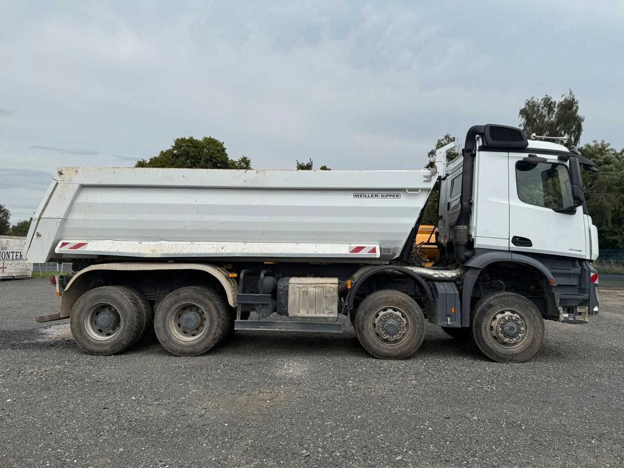 Zeer robuuste Mercedes-Benz Arocs 4145 muldenkipper, uitgevoerd in 8x8-configuratie en voorzien van een hoogwaardige Meiller-opbouw. Deze truck is ontworpen voor zware inzet in grondverzet, bouw en infrastructurele projecten, waarbij maximale tractie en laadcapaciteit vereist zijn. De Arocs is uitgerust met een krachtige Euro 6 dieselmotor met een vermogen van 324 kW (450 pk), gekoppeld aan een automatische transmissie. Dankzij de volledig aangedreven 8x8-aandrijving biedt dit voertuig uitstekende prestaties op onverhard terrein en onder zware belasting. Merk: Mercedes-Benz Type: Arocs 4145 Bouwjaar: 2021 Cilinderinhoud: 6cc Kilometerstand bij opname: 119231km Datum eerste toelating: 01-01-2021 Type transmissie: Automatisch Aantal assen: 8 Asconfiguratie: 8 Fuel Type: Diesel Laadvermogen: 25565kg Aantal sleutels: 2 Emissieklasse: 6 Hydraulische laadklep: true Navigatie: true Eigen gewicht: 16435kg Nationaliteit documenten: Duits Kentekenpapieren compleet?: true Aantal zitplaatsen: 2 Automaat: true Diesel: true
