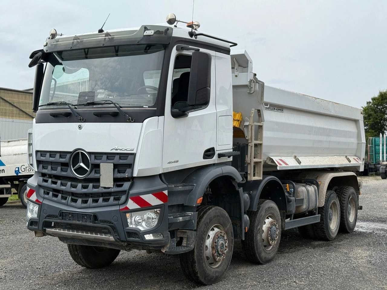 Zeer krachtige Mercedes-Benz Arocs 4145 muldenkipper, uitgevoerd in een volledig aangedreven 8x8-configuratie en voorzien van een robuuste Meiller-muldenkipperopbouw. Deze truck is ontworpen voor zware inzet in grondverzet, bouw en infrastructurele projecten, waar maximale tractie en laadcapaciteit essentieel zijn. Het voertuig is uitgerust met een sterke Euro 6 dieselmotor met een vermogen van 324 kW (450 pk), gekoppeld aan een automatische transmissie. De 8x8-aandrijving garandeert uitstekende prestaties op onverhard terrein en bij zware belading. Merk: Mercedes-Benz Type: Arocs 4145 Bouwjaar: 2021 Cilinderinhoud: 6cc Kilometerstand bij opname: 138059km Datum eerste toelating: 01-01-2021 Type transmissie: Automatisch Aantal assen: 8 Asconfiguratie: 8 Fuel Type: Diesel Laadvermogen: 25565kg Aantal sleutels: 2 Emissieklasse: 6 Hydraulische laadklep: true Navigatie: true Eigen gewicht: 16435kg Nationaliteit documenten: Duits Kentekenpapieren compleet?: true Automaat: true Diesel: true