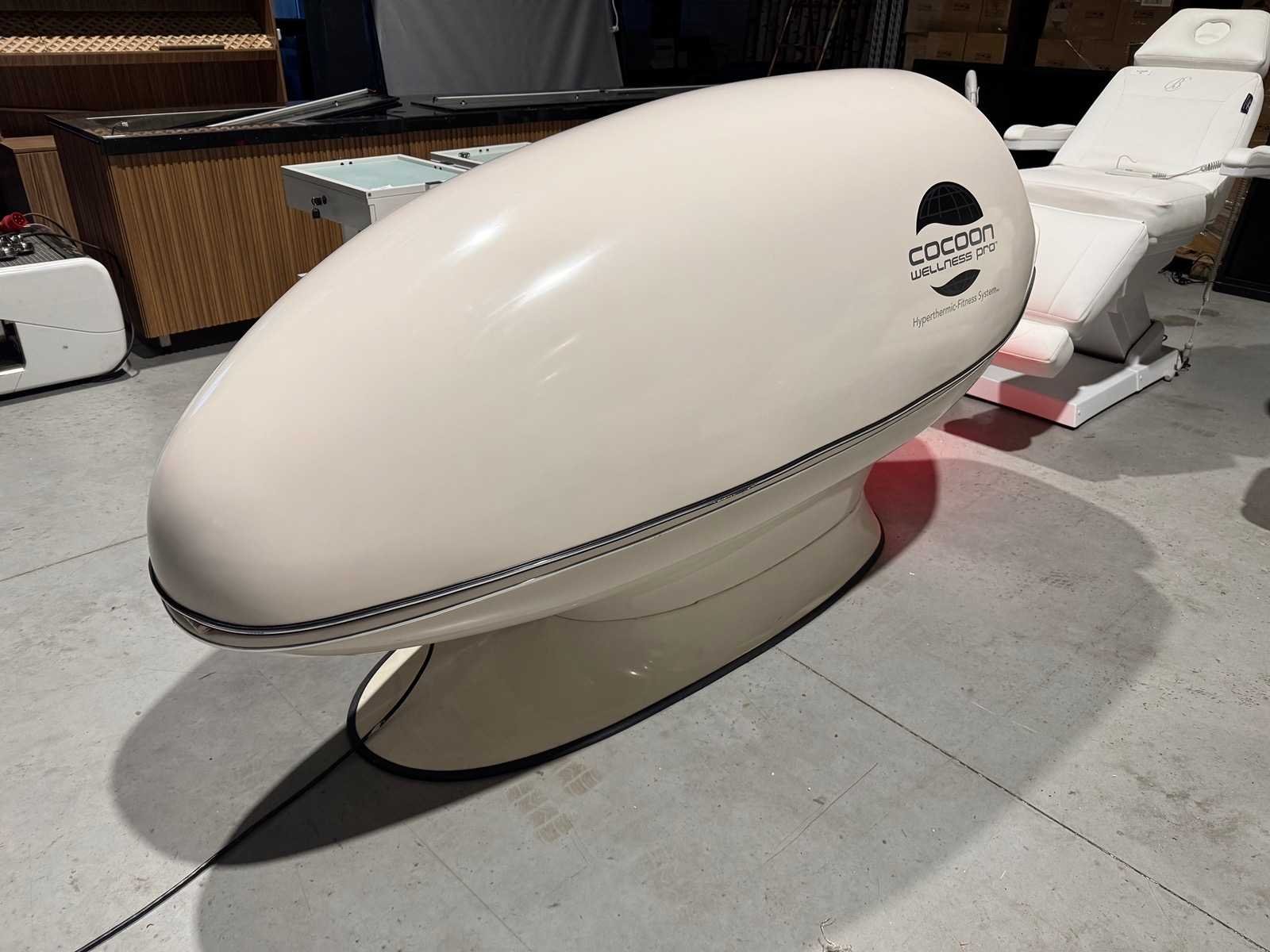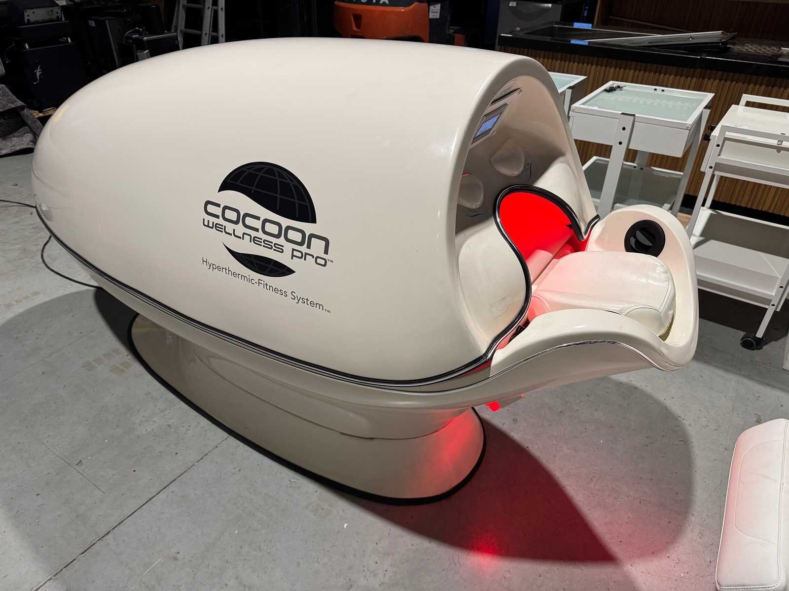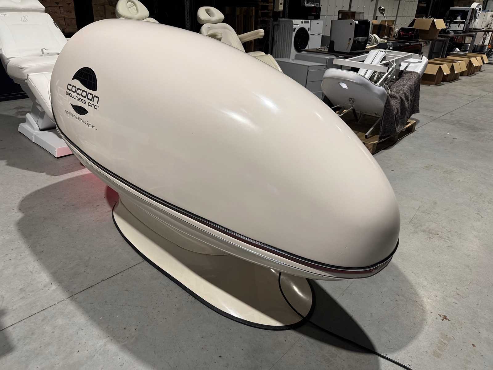 De Cocoon Wellness Pro Pod is een geavanceerde, persoonlijke wellness-capsule die een combinatie van infrarood warmte, vibratiemassage, en vaak ook aromatherapie en lichttherapie biedt, voor diepe ontspanning, pijnverlichting, detoxificatie, verbeterde circulatie en ondersteuning bij gewichtsbeheer, door middel van een gepersonaliseerde, volledig ingesloten ervaring. Deze machine, gebruikt in spa's en wellnesscentra, combineert verschillende technologieën om een holistische ervaring te creëren voor lichaam en geest. Merk: Cocoon Wellness Pro Type: Hyperthermic-Fitness System Bouwjaar: 2021 Aansluiting: 230V
