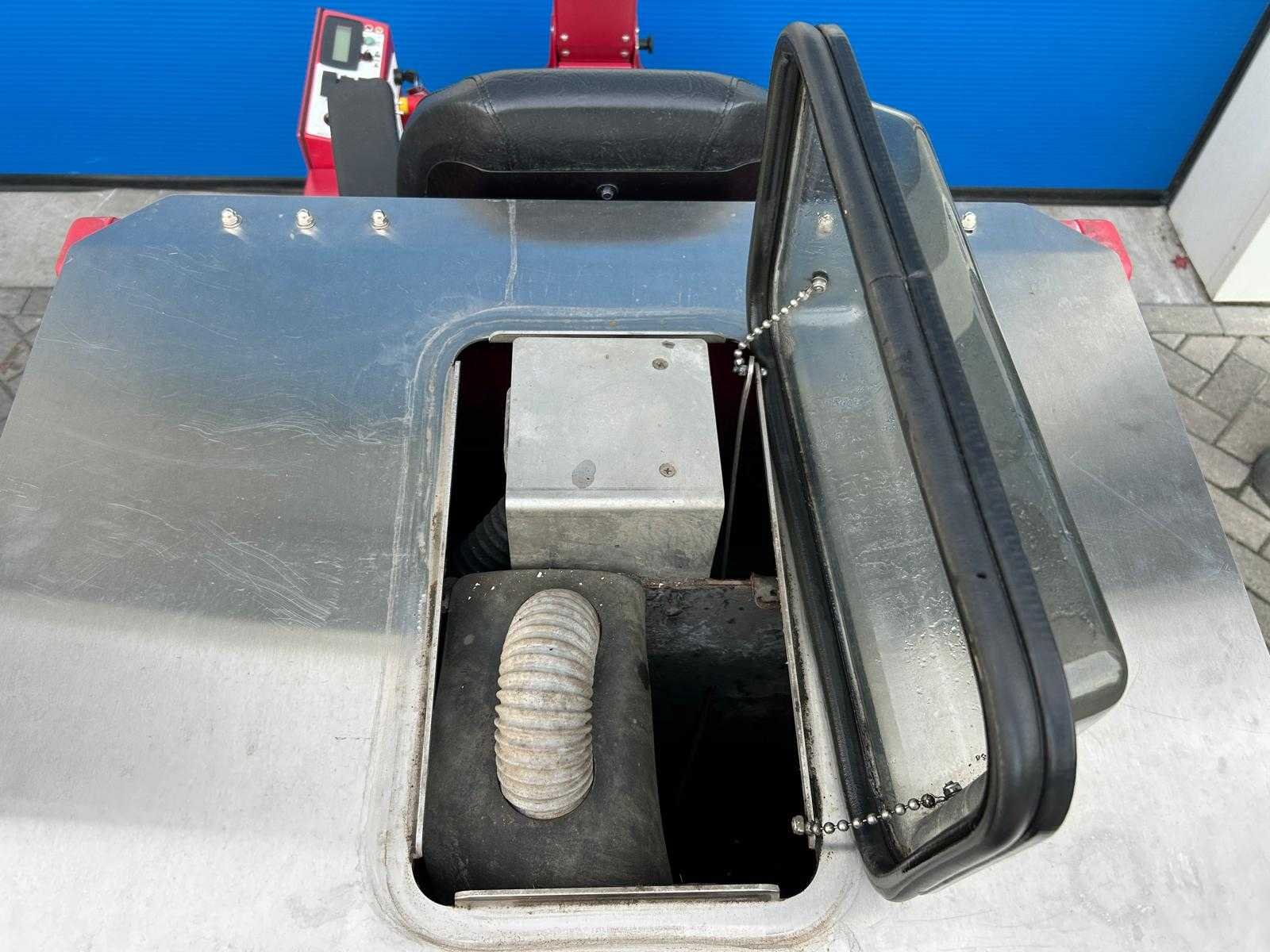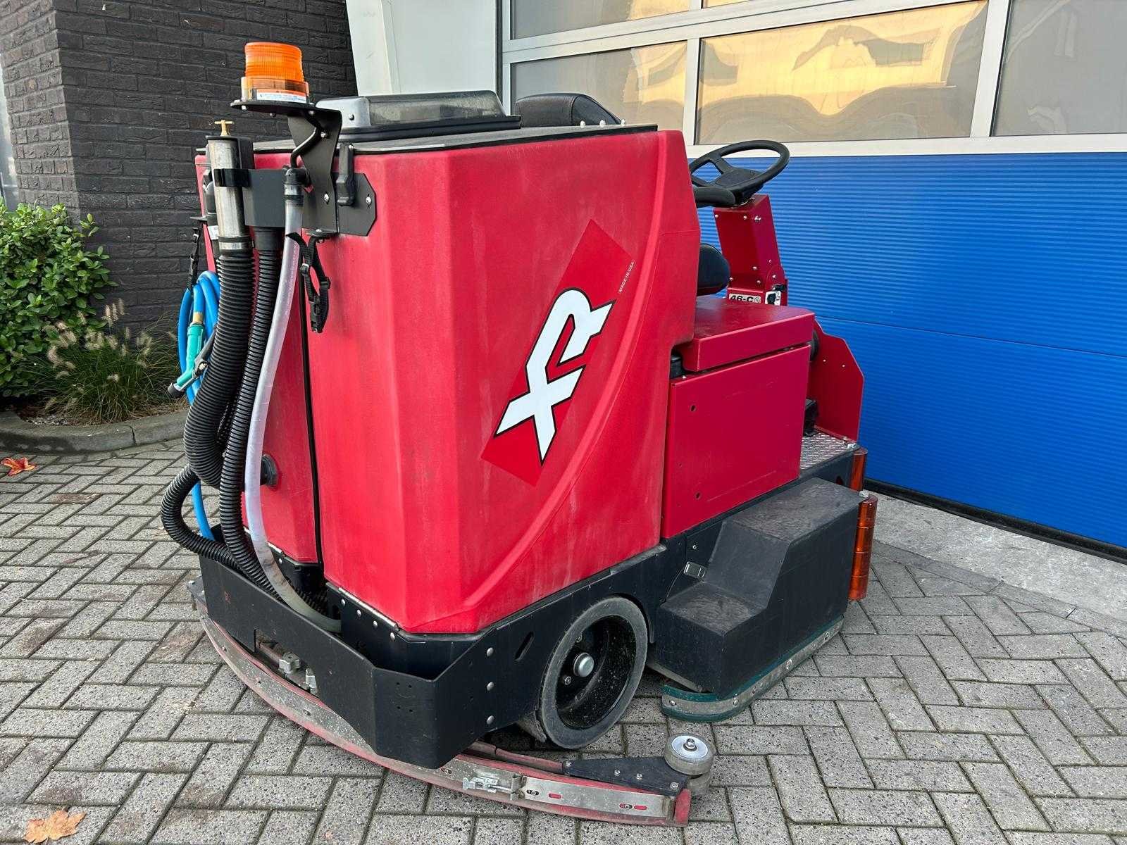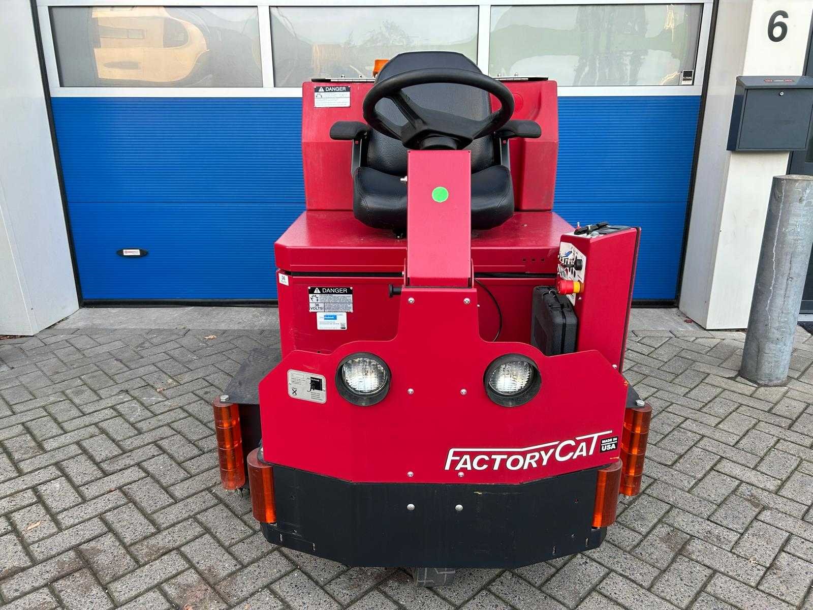 Factory Cat XR schrob/zuigmachine; industriële zitschrobmachine; voorzien van grote watertanks; dubbele stofzuigers; elektromotor op 36 V; afgelezen urenteller ca. 912 bedrijfsuren; wendbare en gebruiksvriendelijke uitvoering Merk: Factory Cat Type: XR Afgelezen urenstand: 912 Elektrisch aangedreven: true Met oplader: true Motor type: false