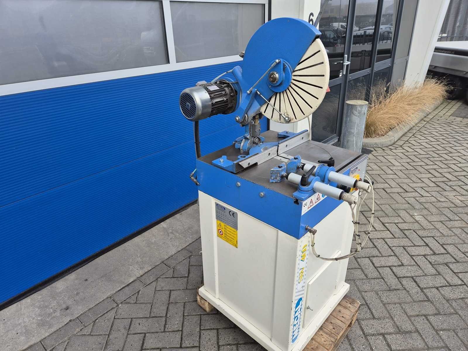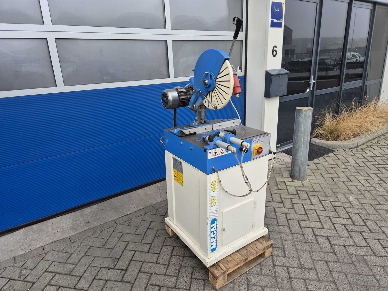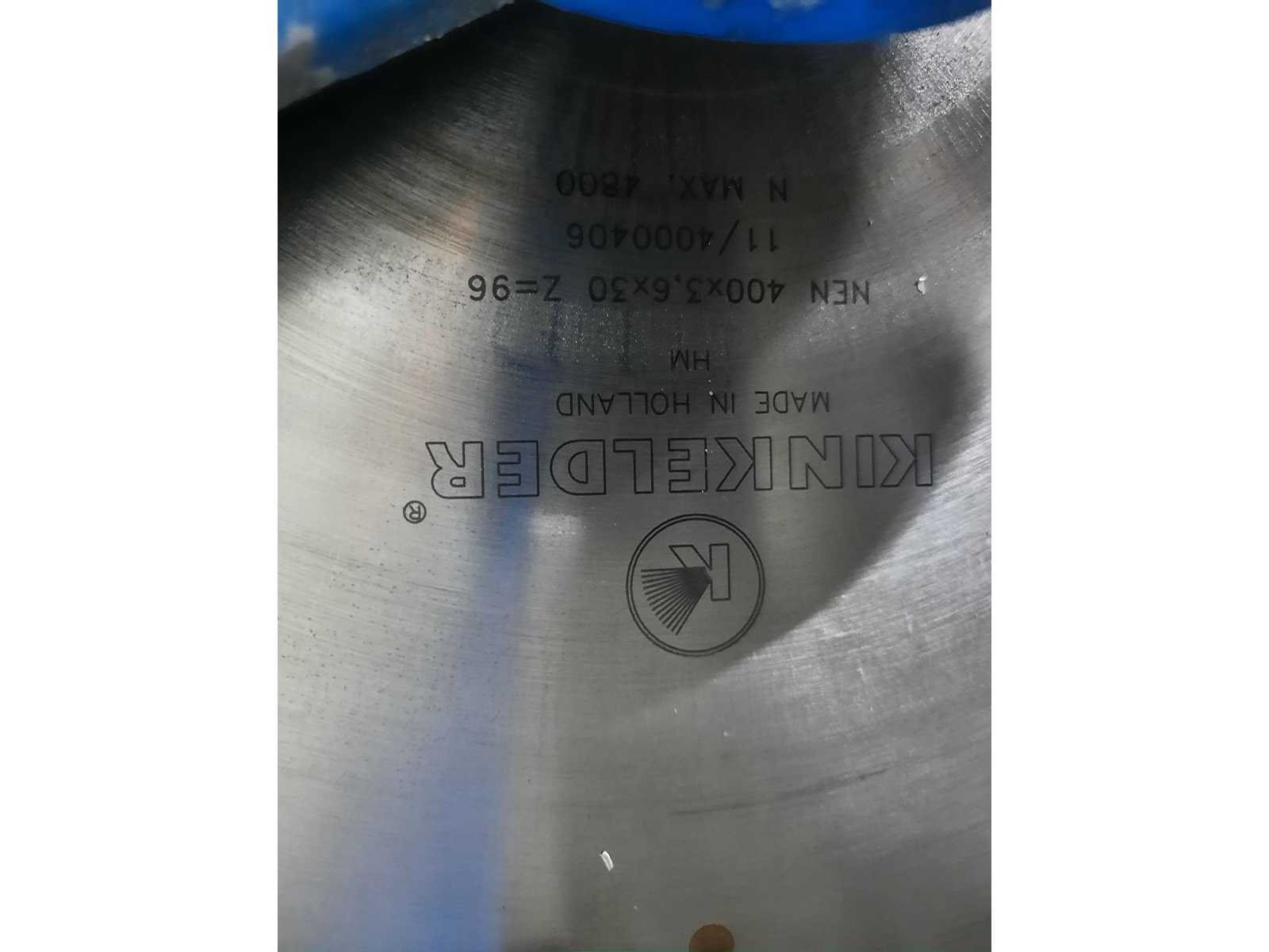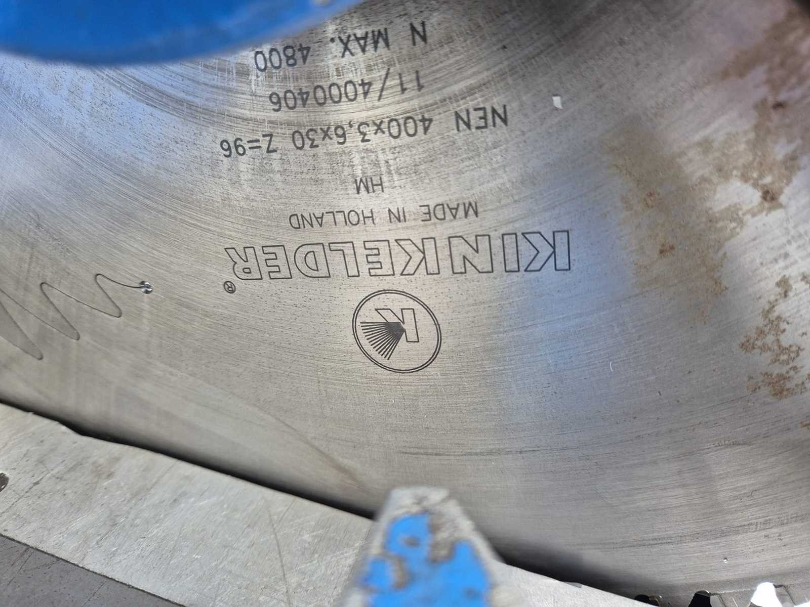 De Mecal 400 SW is reeds gedemonteerd. Uitgerust met een rollenbaan MPS van 2x6 meter voorzien van een automatisch meetsysteem, een zaagblad van 400 mm, nevelsmering en een pneumatische machineklem. De machine biedt dubbelzijdig verstek met vergrendeling op 90°, 45°, 30° en 15°, terwijl de verticale as kan worden gekanteld tot 45°. De aandrijving gebeurt via een 2,2 kW elektromotor op 380 volt. Merk: Mecal Type: 400SW Zaagblad Ø: 400mm Aansluiting: 380V