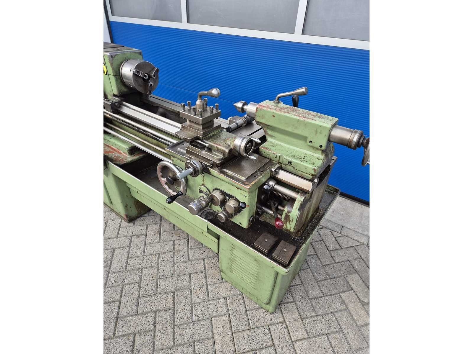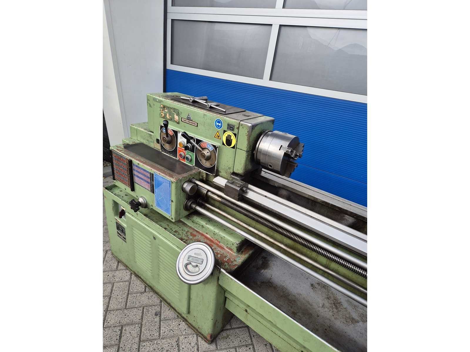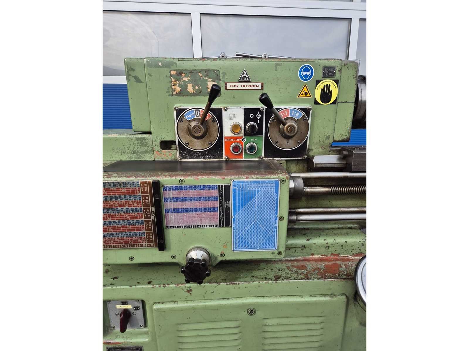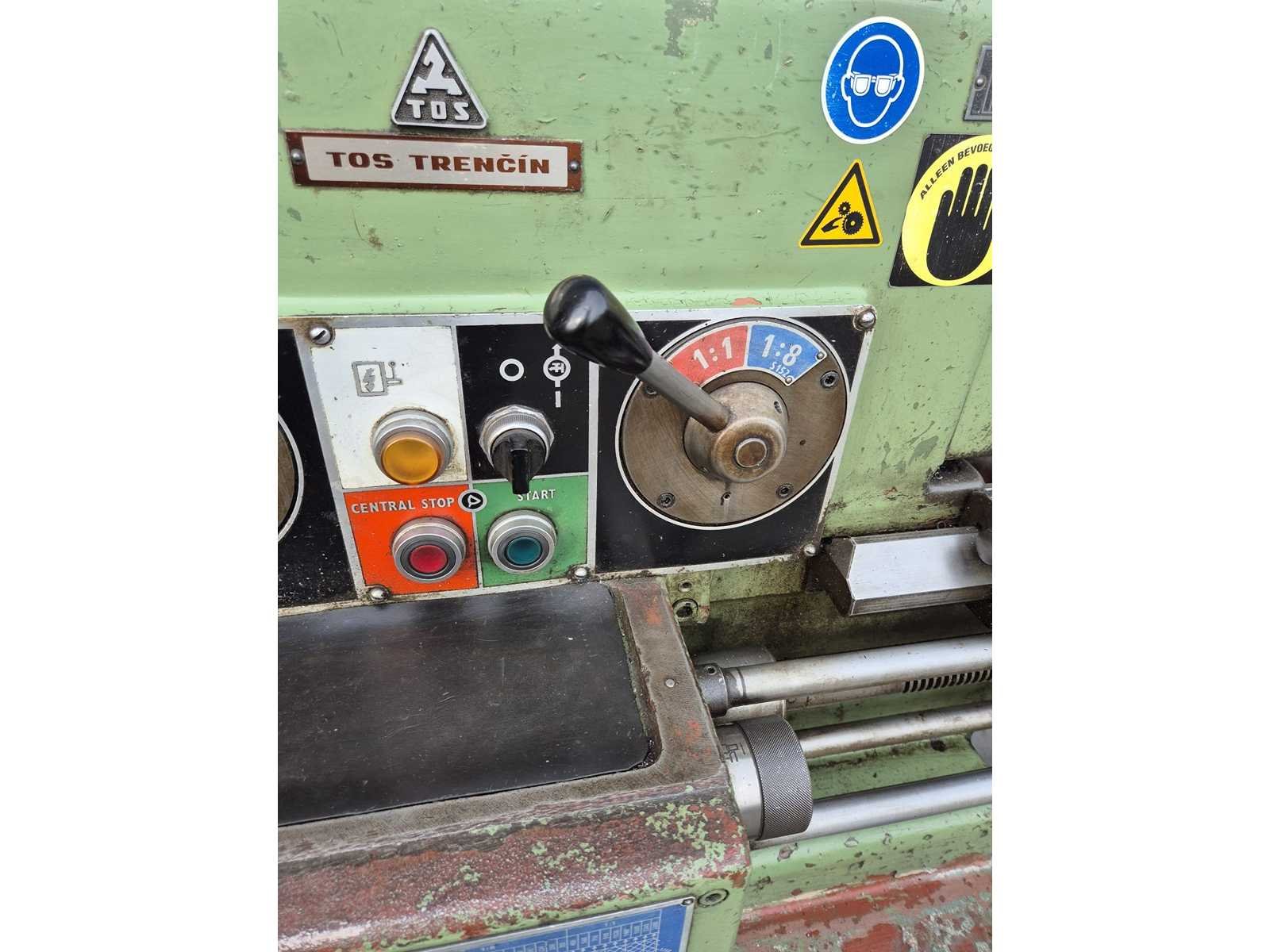 TOS SV-18 RA metaaldraaibank; afstand tussen de centers 850 mm; maximale draaidiameter 380 mm; doorlaat 42 mm; toerentalbereik 14–2800 t/min; machinegewicht ca. 2000 kg; compleet en direct klaar voor gebruik. Merk: TOS TRECIN Type: SV-18 RA Serienummer: 01807701055 Aansluiting: 380V Machinegewicht: 2000kg