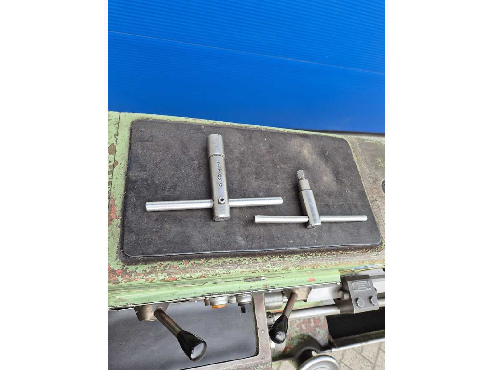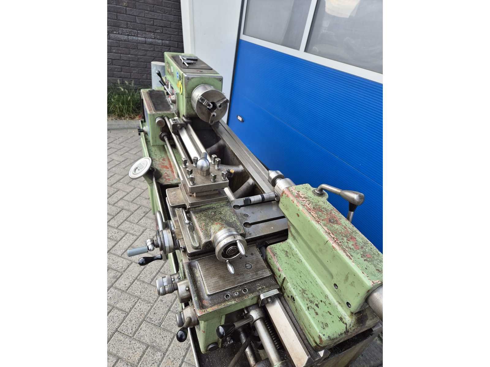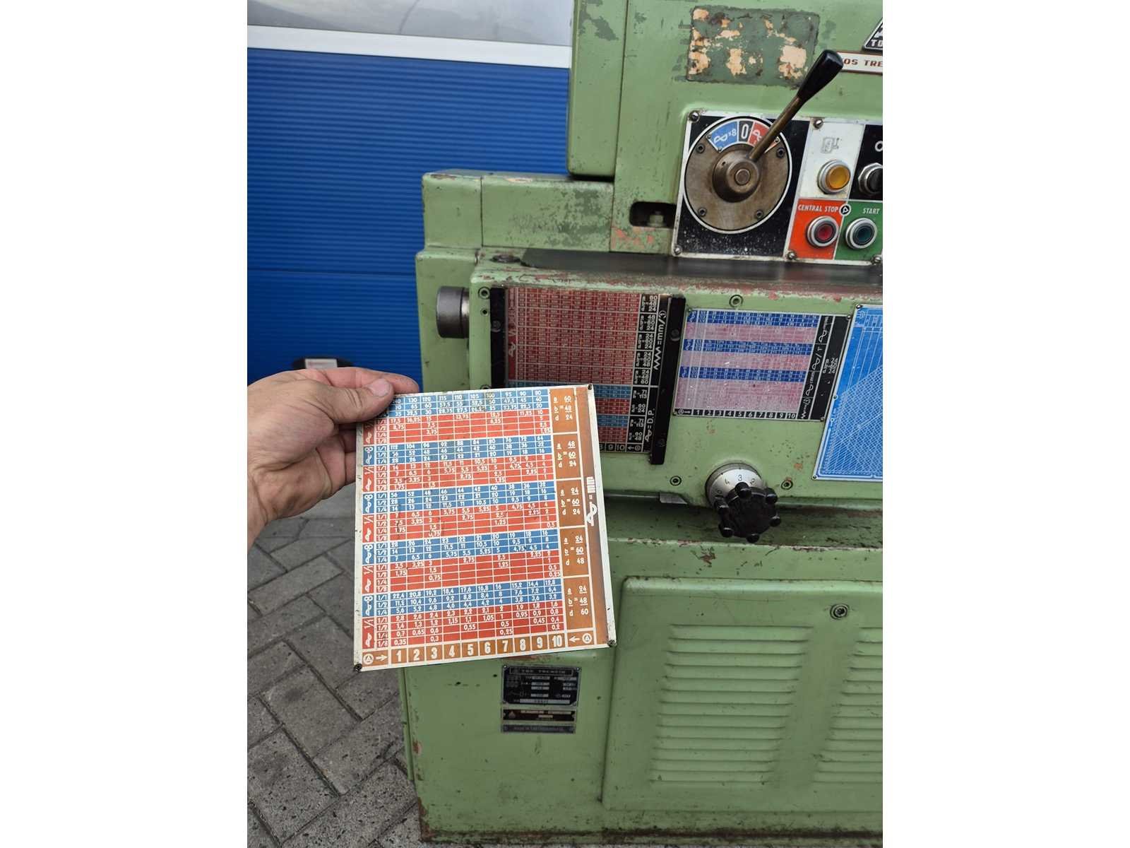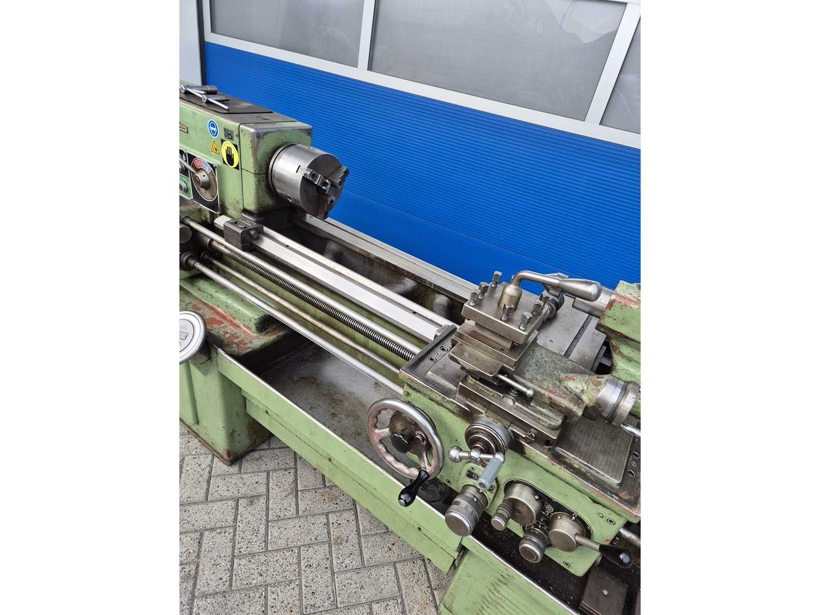 TOS SV-18 RA metaaldraaibank; afstand tussen de centers 850 mm; maximale draaidiameter 380 mm; doorlaat 42 mm; toerentalbereik 14–2800 t/min; machinegewicht ca. 2000 kg; compleet en direct klaar voor gebruik. Merk: TOS TRECIN Type: SV-18 RA Serienummer: 01807701055 Aansluiting: 380V Machinegewicht: 2000kg