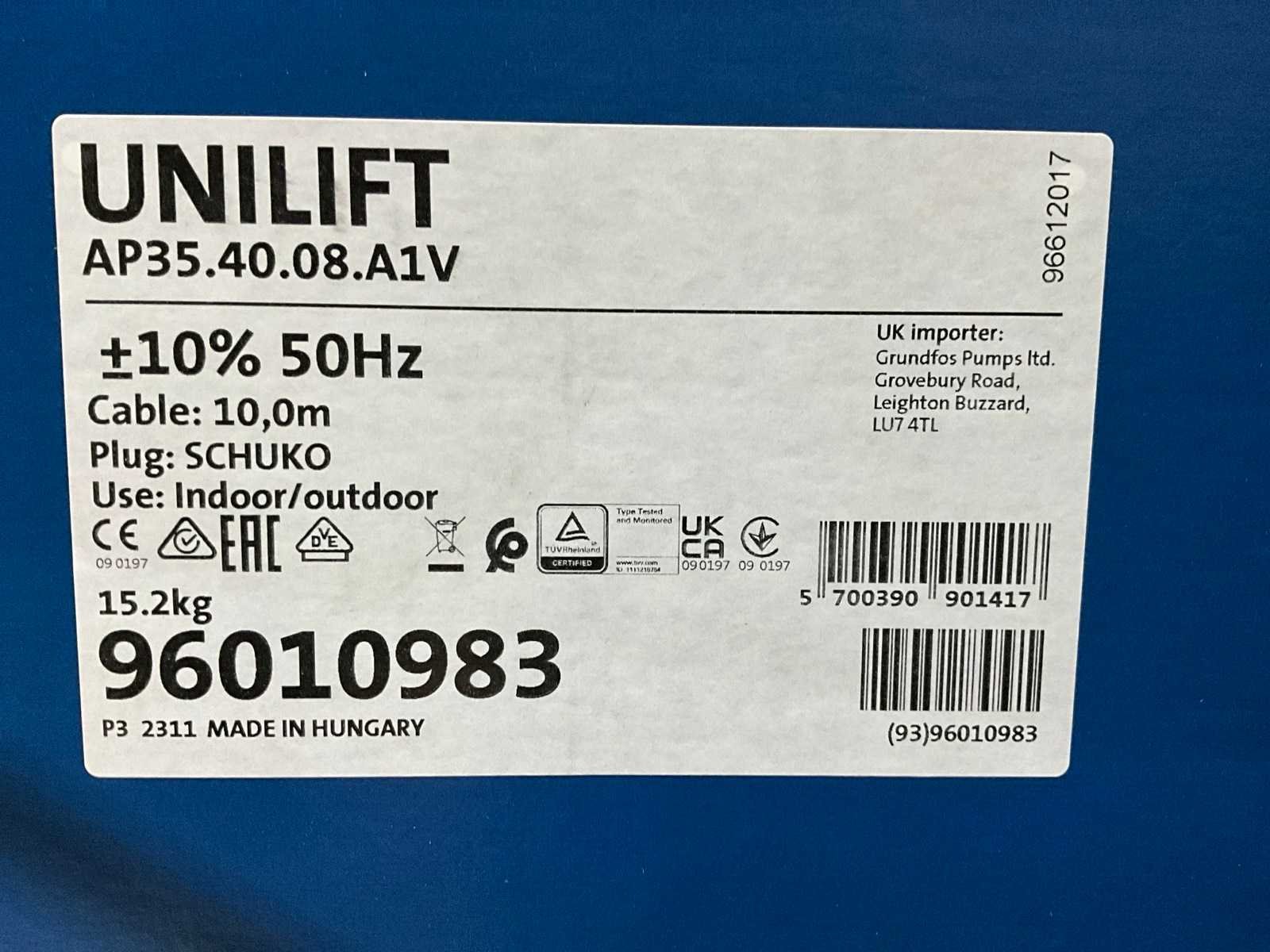 Merk: Grundfos Model: Unilift AP 96010983
