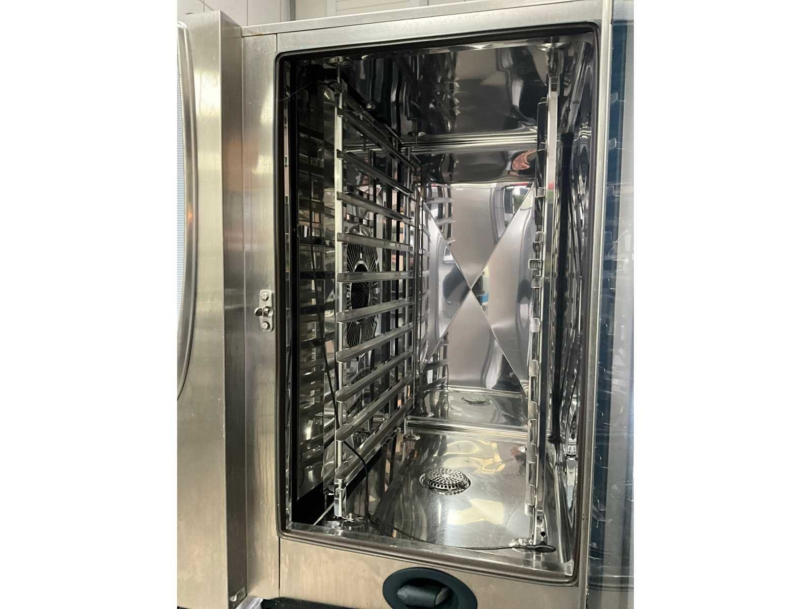 Voor 10x 1/1 GNn; Inclusief onderstel; Merk: Rational Type: SCC 101E Aantal niveau's: 10 Vermogen: 19000W Elektrisch: true Rvs: true Totale afmeting L: 90cm Totale afmeting Breedte: 84cm Totale afmeting Hoogte: 181cm