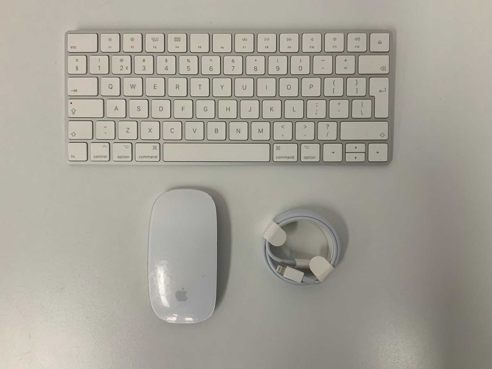 <h2>⌨️🖱️ Apple Magic Keyboard (QWERTY) + Magic Mouse</h2> <p> <strong>Producten:</strong> Apple Magic Keyboard + Apple Magic Mouse | <strong>Toetsenbord:</strong> Magic Keyboard – QWERTY layout | <strong>Muis:</strong> Magic Mouse | <strong>Kleur:</strong> Wit/Zilver </p> <p> Deze set bestaat uit een Apple Magic Keyboard met QWERTY-toetsenbordindeling en een Apple Magic Mouse. De accessoires zijn ontworpen voor naadloze samenwerking met Apple-computers en bieden een strak design en gebruiksvriendelijke bediening. </p> <ul> <li>✔️ Apple Magic Keyboard – QWERTY layout</li> <li>✔️ Apple Magic Mouse – multitouch-oppervlak</li> <li>✔️ Draadloos ontwerp – geschikt voor macOS-systemen</li> <li>✔️ Strak en minimalistisch Apple-design</li> <li>✔️ Inclusief kabel</li><li> </li></ul> <p> <strong>Conditie:</strong> Gebruikt – volledig werkend. Lichte gebruikssporen mogelijk. Raadpleeg de foto’s voor de exacte staat van toetsenbord en muis. </p> <p> 🌱 <strong>Duurzame keuze:</strong> Door te kiezen voor hergebruik van Apple-accessoires verleng je de levensduur van elektronica en help je elektronisch afval te verminderen. </p> Within 14 days Merk: Apple