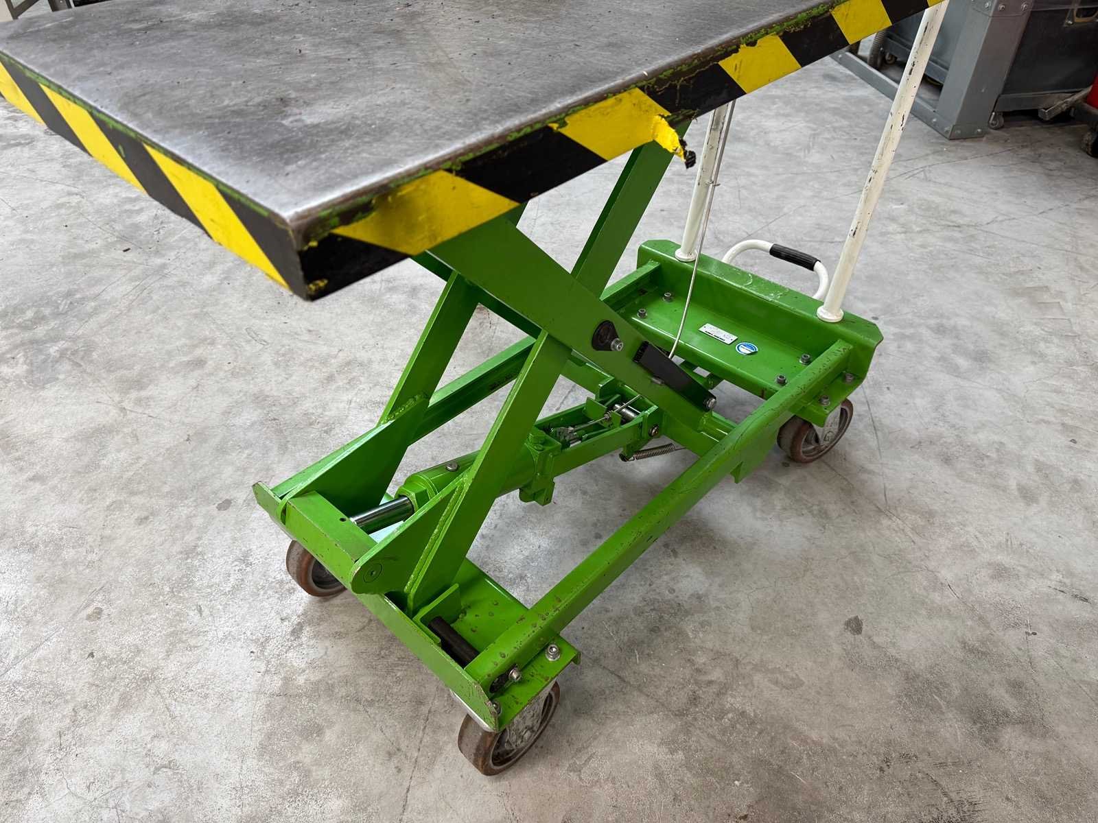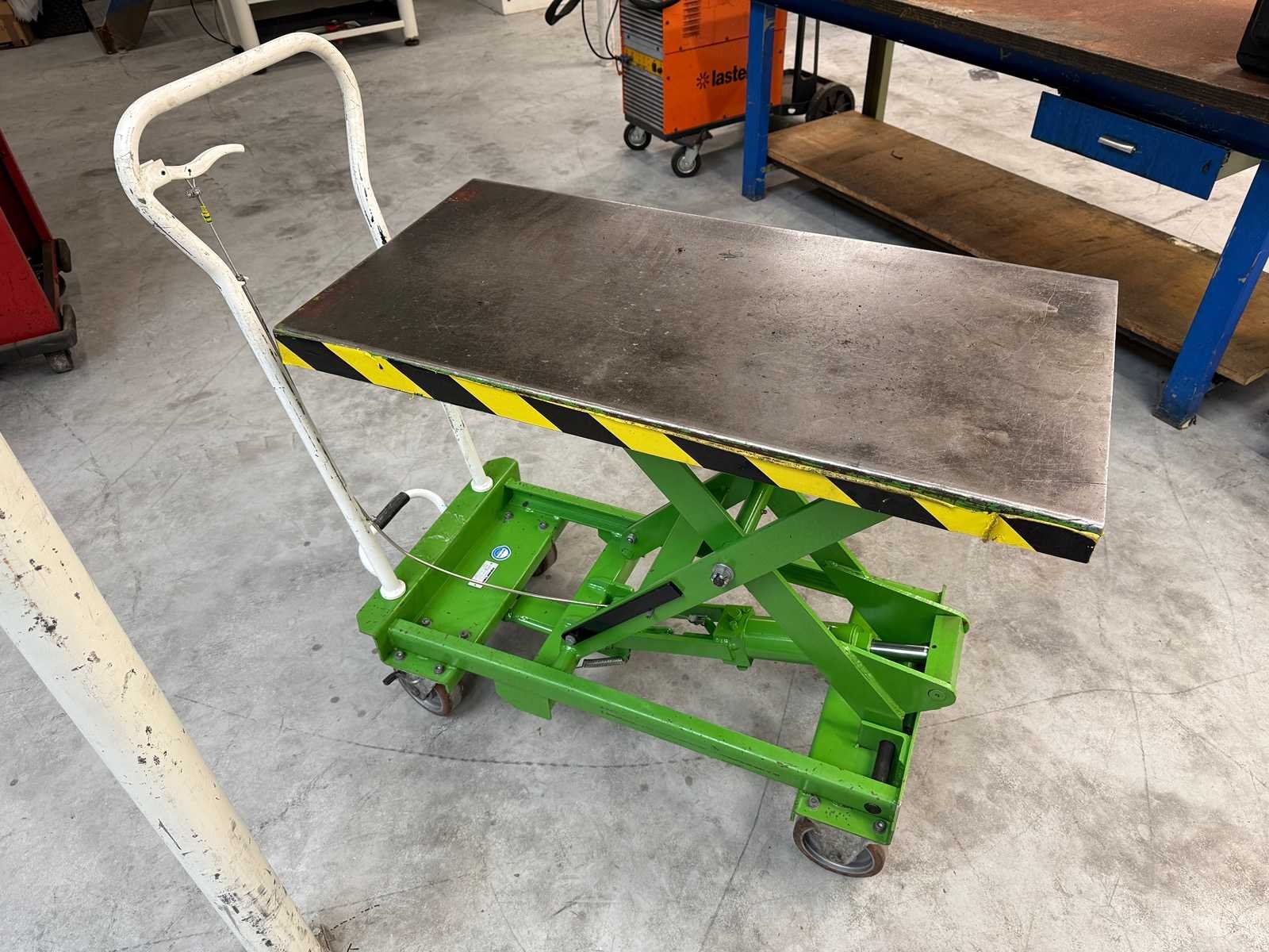 Mobile lift table Nee Merk: Estil Type: 500 Hefvermogen: 500kg Afmeting l: 1000cm Afmeting b: 520cm Afmeting h: 1000cm Totale afmeting L: 1300mm Totale afmeting Breedte: 550mm Totale afmeting Hoogte: 1200mm Leveringsvoorwaarden: Geladen op vrachtwagen