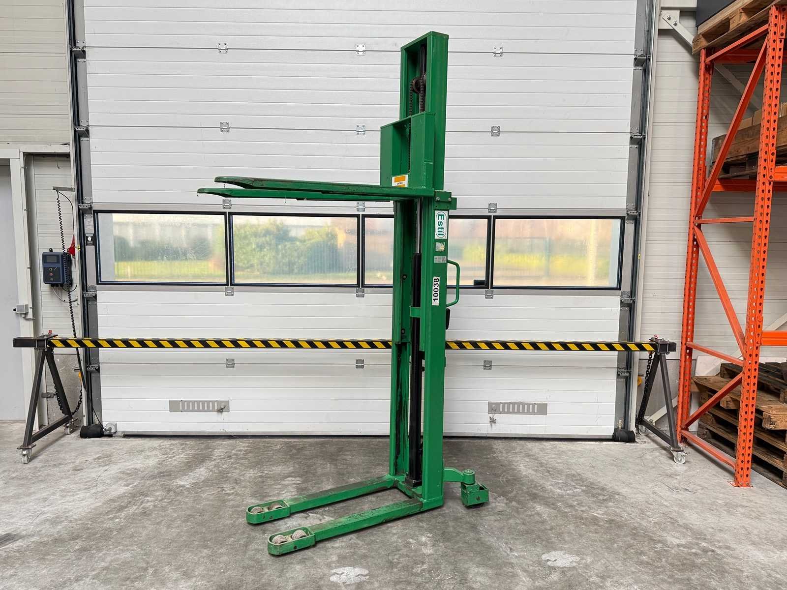 Nee Merk: Estil Type: 1000/2885 Serienummer: 210053 Hefvermogen: 1000kg Afmeting l: 1600cm Afmeting b: 800cm Afmeting h: 2000cm Eigen gewicht: 200kg Totale afmeting Hoogte: 2885mm Leveringsvoorwaarden: Geladen op vrachtwagen