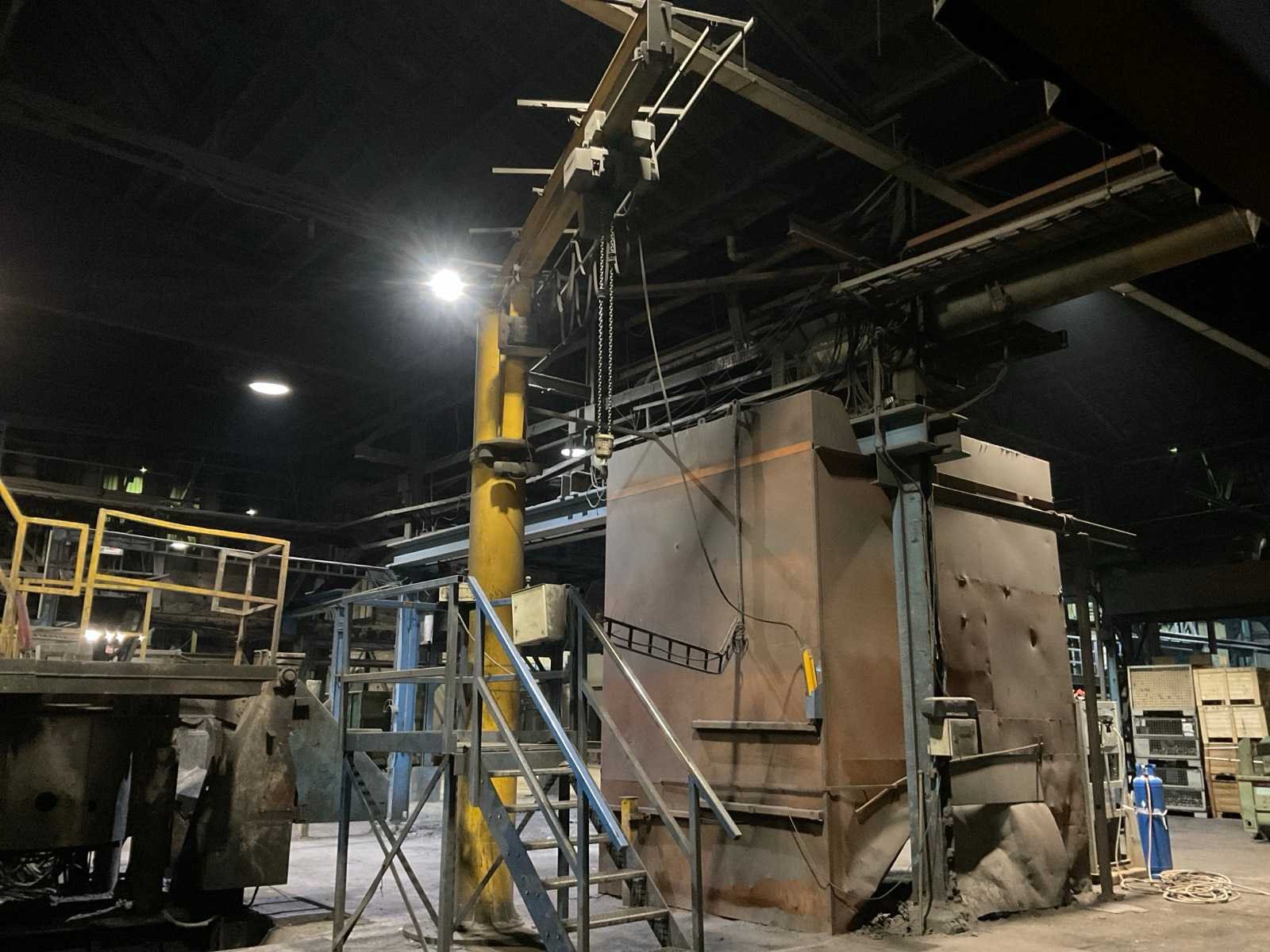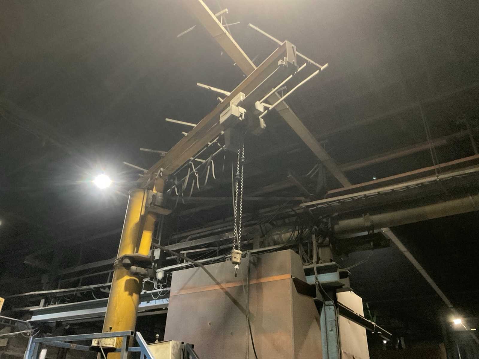Nee Hijsvermogen: 2000kg Max. hijshoogte: 4.5m Armlengte: 2500mm Aansluiting: 400V Totale afmeting L: 3000mm Totale afmeting Breedte: 1000mm Totale afmeting Hoogte: 5500mm
