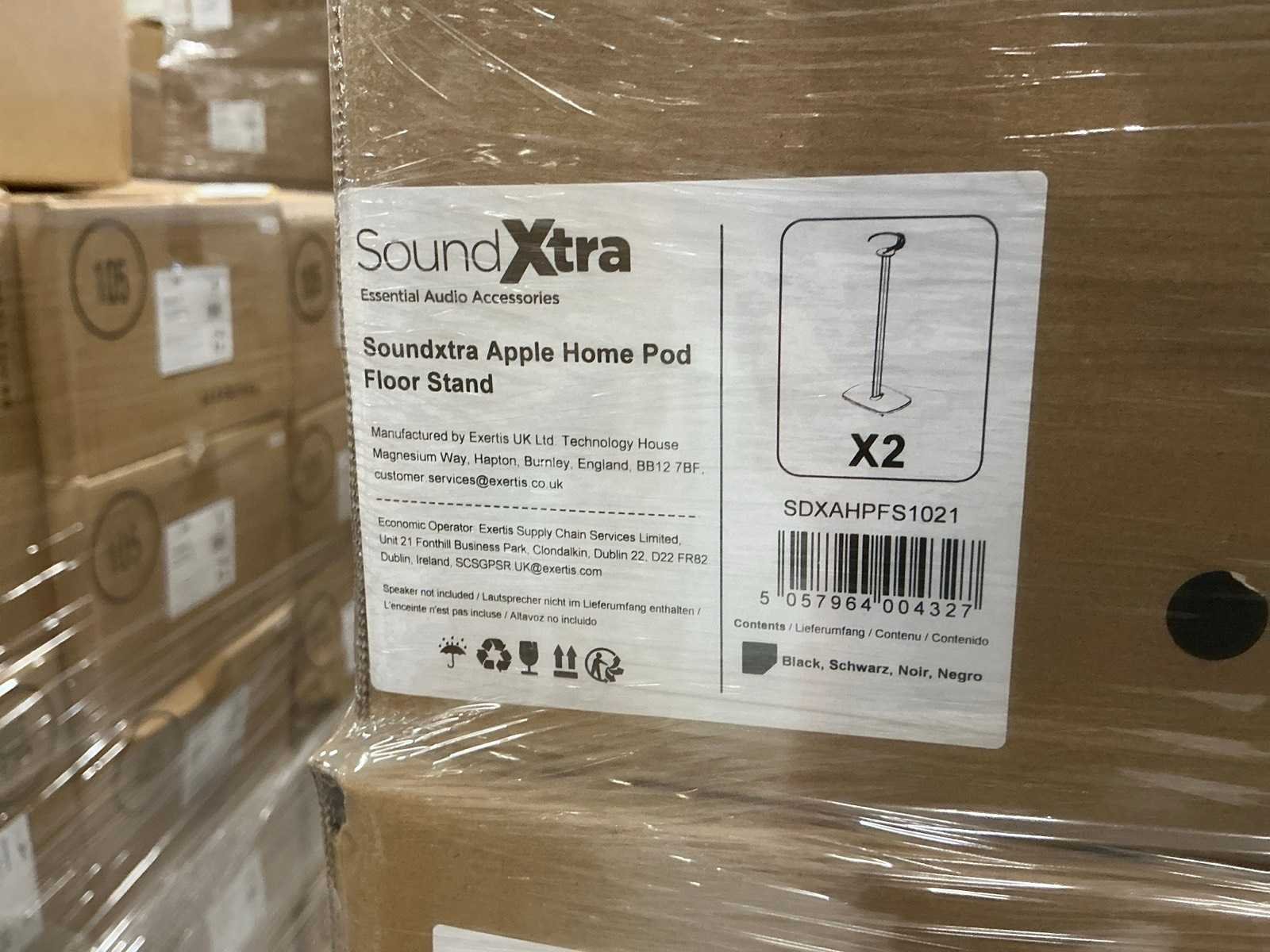 Zonder HomePod. Waarvan 30 wit en 50 zwart. Ongebruikt in doos op en met 1 pallet. No Merk: SoundXtra Lengte: 6 Breedte: 22 Hoogte: 75