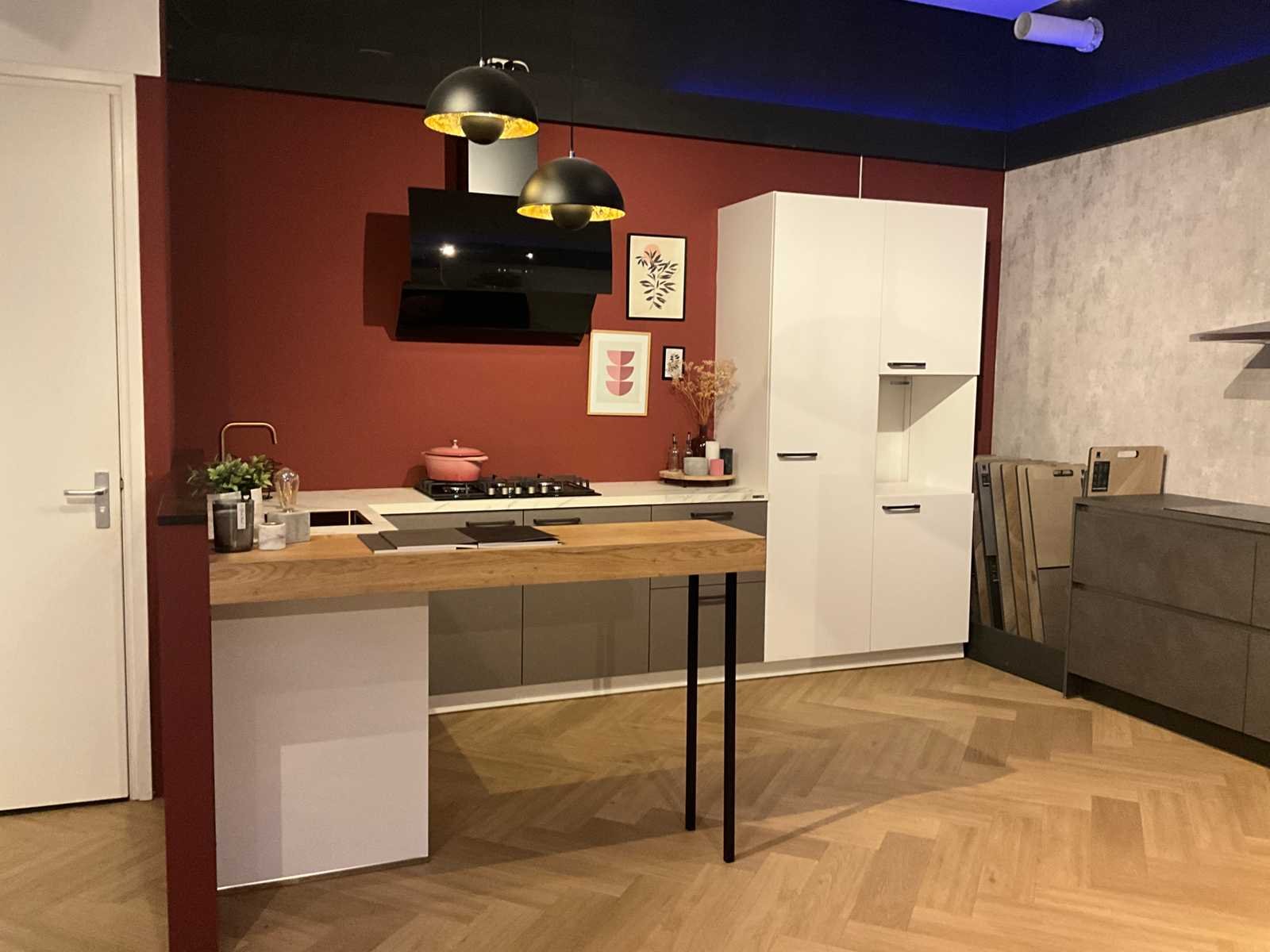 Afmetingen linkerdeel circa 190x60x90 cm; afmetingen rechterdeel circa 367x60x220 cm; afmetingen bar circa 150x40 cm; zonder kookplaat; keuken dient gedemonteerd te worden op locatie; zonder inhoud en accessoires Nee Merk: Artego Type keukenopstelling: Hoek met bar Kraan: Ja Gootsteen: Ja Aanrechtblad: Neolith keramiek Koelkast: Schneider SCRL771ABO Softclose: true Afzuigkap: Frilec DRESDEN925 Vaatwasser: Bosch SNVSMV4ECX14N/13 Kleur: titanium geborsteld / taupekleurig