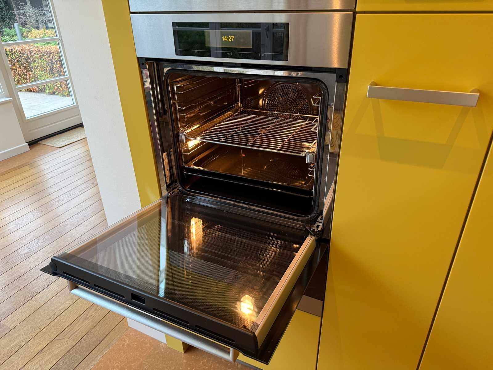 Conditie: gebruikt; met warmhoudlade Miele; afmetingen kastenwand circa 230x260x245 cm; reeds gedemonteerd en ingepakt op pallets. (afstapelen, omruilen of statiegeld per pallet); pallets zijn niet inbegrepen; statiegeld betalen bij afhalen, of pallets afstapelen; werkblad niet ingepakt op pallets (25-2DE-03044) Nee Merk: Mereno Type keukenopstelling: Eiland Lengte: 360cm Breedte: 60cm Hoogte: 297cm Koffiezetapparaat: Miele Magnetron: Hogedruk stoomoven Miele Fornuis: AEG + Miele Softclose: true Oven: Miele H5681BP Vaatwasser: Miele G 7165 SCVi XXL Lengte kookeiland: 256cm Breedte kookeiland: 80cm Hoogte kookeiland: 90cm